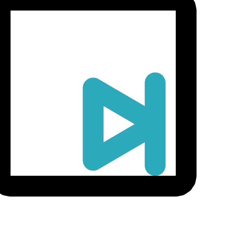 <svg fill="#000000" width="800px" height="800px" viewBox="0 0 24 24" id="forward-square" data-name="Line Color" xmlns="http://www.w3.org/2000/svg" class="icon line-color"><path id="secondary" d="M9,8.5v7L15,12ZM15,16V8" style="fill: none; stroke: rgb(44, 169, 188); stroke-linecap: round; stroke-linejoin: round; stroke-width: 2;"></path><rect id="primary" x="3" y="3" width="18" height="18" rx="1" transform="translate(24 24) rotate(180)" style="fill: none; stroke: rgb(0, 0, 0); stroke-linecap: round; stroke-linejoin: round; stroke-width: 2;"></rect></svg>