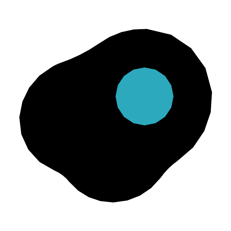 <svg fill="#000000" width="800px" height="800px" viewBox="0 0 24 24" id="fried-egg" data-name="Flat Color" xmlns="http://www.w3.org/2000/svg" class="icon flat-color"><path id="primary" d="M22,9.56A7.17,7.17,0,0,0,15.23,3a7.73,7.73,0,0,0-5,1.54,15.88,15.88,0,0,1-4,2,5.61,5.61,0,0,0-.79.37A6.39,6.39,0,0,0,2,12.17a5.66,5.66,0,0,0,3.64,5.52A3.88,3.88,0,0,1,7.21,18.9,5.71,5.71,0,0,0,11.68,21h.14a6.18,6.18,0,0,0,4.82-2.52,7.44,7.44,0,0,1,1.82-1.82A7.81,7.81,0,0,0,22,9.56Z" style="fill: rgb(0, 0, 0);"></path><circle id="secondary" cx="15" cy="10" r="3" style="fill: rgb(44, 169, 188);"></circle></svg>