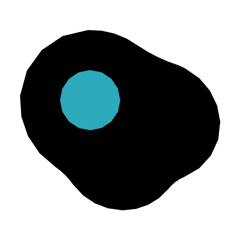 <svg fill="#000000" width="800px" height="800px" viewBox="0 0 24 24" id="fried-egg-left" data-name="Flat Color" xmlns="http://www.w3.org/2000/svg" class="icon flat-color"><path id="primary" d="M18.55,6.87a5.61,5.61,0,0,0-.79-.37,15.88,15.88,0,0,1-4-1.95A7.73,7.73,0,0,0,8.78,3,7.17,7.17,0,0,0,2,9.56a7.81,7.81,0,0,0,3.52,7.1,7.44,7.44,0,0,1,1.82,1.82A6.18,6.18,0,0,0,12.18,21h.14a5.71,5.71,0,0,0,4.47-2.1,3.88,3.88,0,0,1,1.57-1.21A5.64,5.64,0,0,0,22,12.17,6.39,6.39,0,0,0,18.55,6.87Z" style="fill: rgb(0, 0, 0);"></path><circle id="secondary" cx="9" cy="10" r="3" style="fill: rgb(44, 169, 188);"></circle></svg>