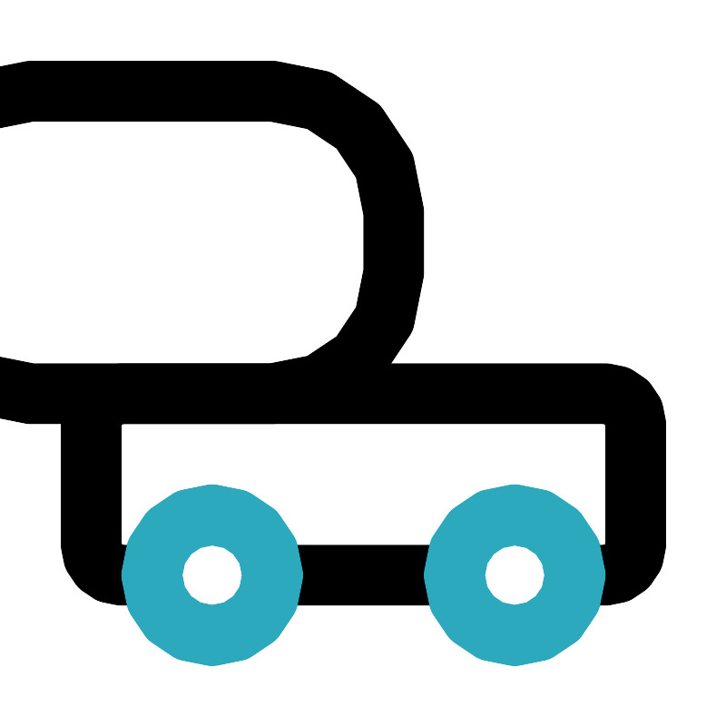 <svg fill="#000000" width="800px" height="800px" viewBox="0 0 24 24" id="fuel-truck" data-name="Line Color" xmlns="http://www.w3.org/2000/svg" class="icon line-color"><path id="primary" d="M5,19H4a1,1,0,0,1-1-1V14a1,1,0,0,1,1-1H20a1,1,0,0,1,1,1v4a1,1,0,0,1-1,1H19" style="fill: none; stroke: rgb(0, 0, 0); stroke-linecap: round; stroke-linejoin: round; stroke-width: 2;"></path><line id="primary-2" data-name="primary" x1="15" y1="19" x2="9" y2="19" style="fill: none; stroke: rgb(0, 0, 0); stroke-linecap: round; stroke-linejoin: round; stroke-width: 2;"></line><rect id="primary-3" data-name="primary" x="7" width="10" height="16" rx="4" transform="translate(20 -4) rotate(90)" style="fill: none; stroke: rgb(0, 0, 0); stroke-linecap: round; stroke-linejoin: round; stroke-width: 2;"></rect><path id="secondary" d="M15,19a2,2,0,1,0,2-2A2,2,0,0,0,15,19ZM5,19a2,2,0,1,0,2-2A2,2,0,0,0,5,19Z" style="fill: none; stroke: rgb(44, 169, 188); stroke-linecap: round; stroke-linejoin: round; stroke-width: 2;"></path></svg>