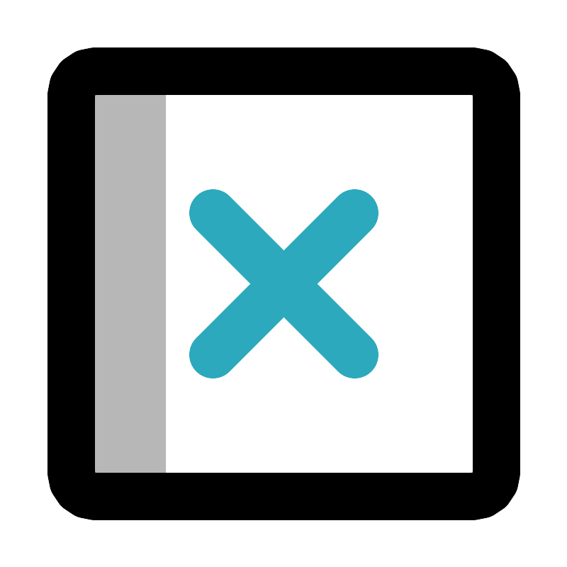 <svg width="800px" height="800px" viewBox="0 0 24 24" id="full-cross-circle" xmlns="http://www.w3.org/2000/svg" class="icon multi-color"><rect id="tertiary-fill" x="3" y="3" width="4" height="18" style="fill: #b7b7b7; stroke-width: 2;"></rect><rect id="primary-stroke" x="3" y="3" width="18" height="18" rx="1" style="fill: none; stroke: rgb(0, 0, 0); stroke-linecap: round; stroke-linejoin: round; stroke-width: 2;"></rect><path id="secondary-stroke" d="M9,15l6-6M9,9l6,6" style="fill: none; stroke: rgb(44, 169, 188); stroke-linecap: round; stroke-linejoin: round; stroke-width: 2;"></path></svg>