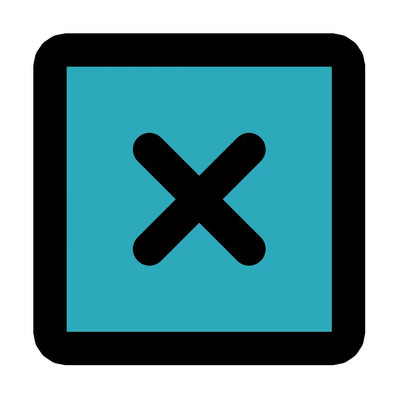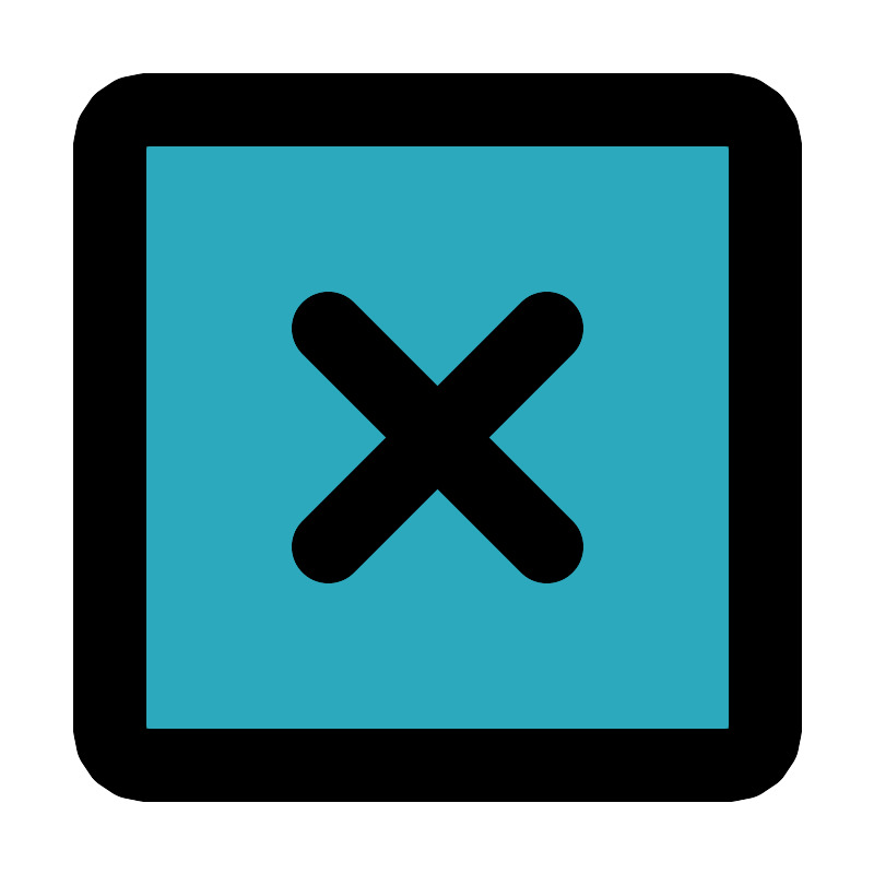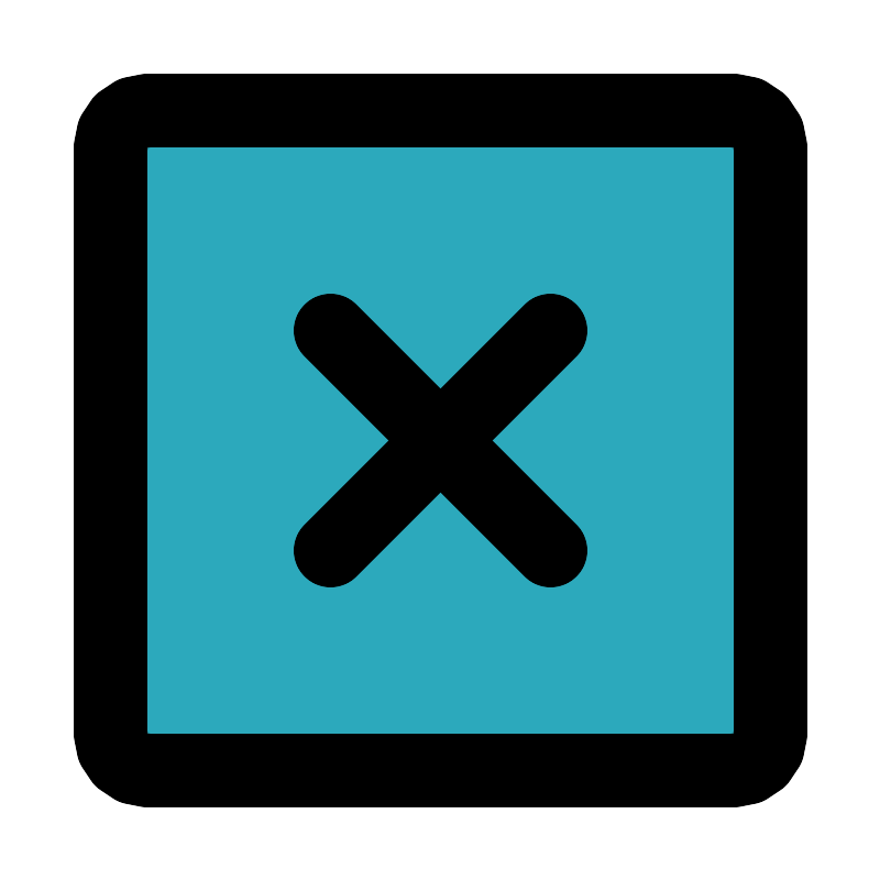 <svg fill="#000000" width="800px" height="800px" viewBox="0 0 24 24" id="full-cross-circle" data-name="Flat Line" xmlns="http://www.w3.org/2000/svg" class="icon flat-line"><rect id="secondary" x="3" y="3" width="18" height="18" rx="1" style="fill: rgb(44, 169, 188); stroke-width: 2;"></rect><line id="primary" x1="9" y1="15" x2="15" y2="9" style="fill: none; stroke: rgb(0, 0, 0); stroke-linecap: round; stroke-linejoin: round; stroke-width: 2;"></line><line id="primary-2" data-name="primary" x1="9" y1="9" x2="15" y2="15" style="fill: none; stroke: rgb(0, 0, 0); stroke-linecap: round; stroke-linejoin: round; stroke-width: 2;"></line><rect id="primary-3" data-name="primary" x="3" y="3" width="18" height="18" rx="1" style="fill: none; stroke: rgb(0, 0, 0); stroke-linecap: round; stroke-linejoin: round; stroke-width: 2;"></rect></svg>