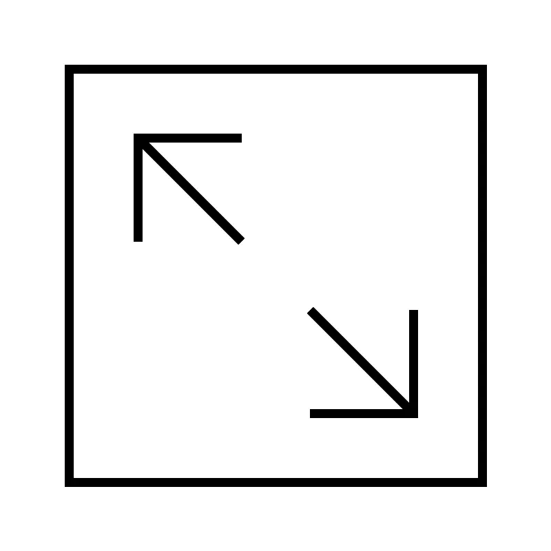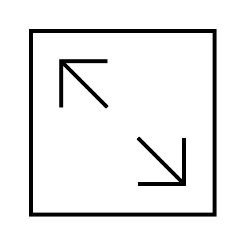 <svg width="800px" height="800px" viewBox="0 0 64 64" xmlns="http://www.w3.org/2000/svg" fill="none" stroke="#000000"><polyline points="36 48 48 48 48 36"/><polyline points="28 16 16 16 16 28"/><rect x="8" y="8" width="48" height="48"/><line x1="16" y1="16" x2="28" y2="28"/><line x1="48" y1="48" x2="36" y2="36"/></svg>