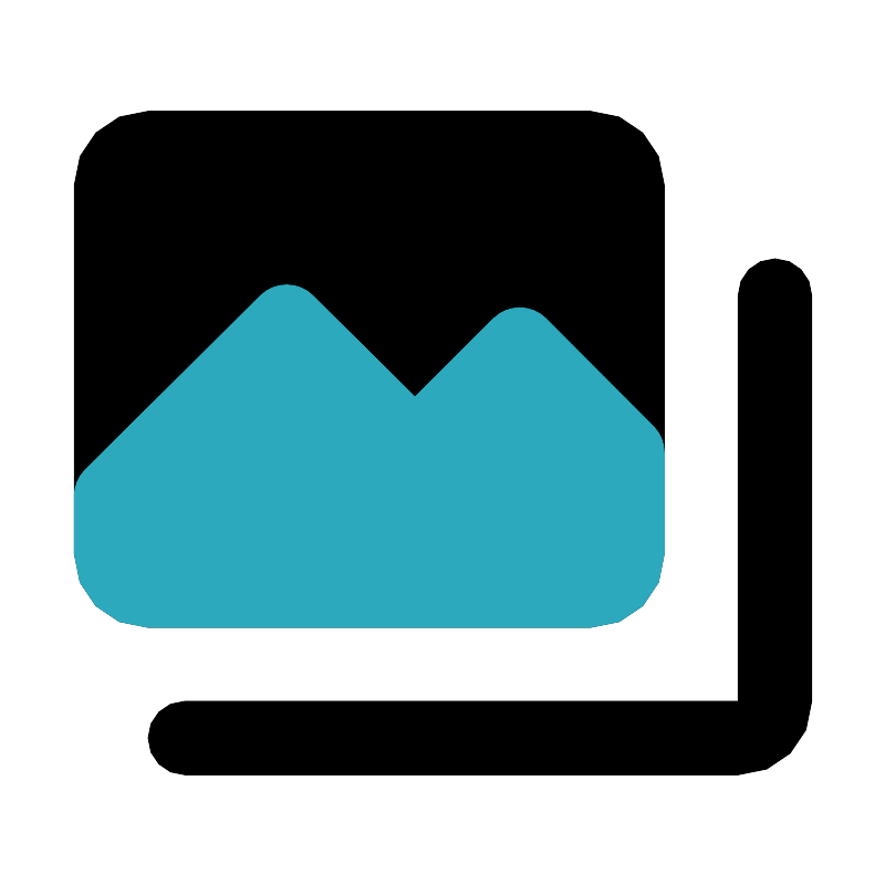 <svg fill="#000000" width="800px" height="800px" viewBox="0 0 24 24" id="gallery-collections" data-name="Flat Color" xmlns="http://www.w3.org/2000/svg" class="icon flat-color"><path id="primary" d="M20,21H5a1,1,0,0,1,0-2H20V8a1,1,0,0,1,2,0V19A2,2,0,0,1,20,21ZM16,3H4A2,2,0,0,0,2,5V15a2,2,0,0,0,2,2H16a2,2,0,0,0,2-2V5A2,2,0,0,0,16,3Z" style="fill: rgb(0, 0, 0);"></path><path id="secondary" d="M17.71,11.55,14.79,8.62a1,1,0,0,0-.71-.29h0a1,1,0,0,0-.71.29l-2.13,2.13L8.47,8a1,1,0,0,0-.71-.29h0A1,1,0,0,0,7.05,8L2.29,12.73a1,1,0,0,0-.29.71V15a2,2,0,0,0,2,2H16a2,2,0,0,0,2-2V12.26A1,1,0,0,0,17.71,11.55Z" style="fill: rgb(44, 169, 188);"></path></svg>