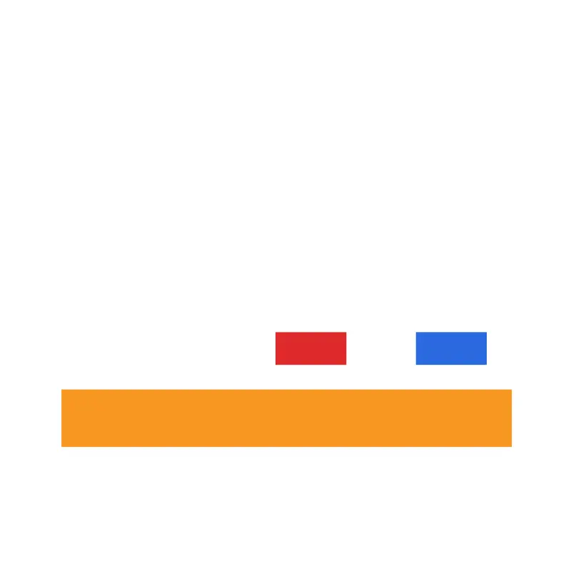 <svg width="800px" height="800px" viewBox="0 0 1024 1024" class="icon" version="1.1" xmlns="http://www.w3.org/2000/svg"><path d="M938.944 653.312h-22.464V550.656h-215.616v102.656h-35.904V550.656H449.28v102.656H307.776l18.24-273.088H224.128l18.24 273.088H87.744a22.464 22.464 0 0 0-22.4 22.4v147.264c0 12.288 10.112 22.4 22.4 22.4h475.328V844.8c0.576 0 1.088 0.32 1.664 0.32a22.4 22.4 0 0 0 22.4-22.464 22.208 22.208 0 0 0-21.184-22.144h75.264a22.208 22.208 0 0 0-21.12 22.144 22.4 22.4 0 0 0 22.4 22.464c0.704 0 1.28-0.32 1.92-0.384v0.64h78.656v-0.32l0.192 0.064a22.4 22.4 0 0 0 22.4-22.464 22.208 22.208 0 0 0-21.12-22.144h145.92a22.208 22.208 0 0 0-21.12 22.144 22.4 22.4 0 0 0 22.4 22.464c0.768 0 1.344-0.384 2.112-0.448l65.152 0.704c12.288 0 22.4-10.048 22.4-22.4v-147.264a22.592 22.592 0 0 0-22.464-22.4z m-375.872 147.264l0.384-0.064-0.384 0.064z m81.344 0.064l-0.704-0.128h0.704v0.128z m229.376 0.064c-0.32-0.064-0.576-0.192-0.896-0.192h0.896v0.192z" fill="" /><path d="M110.144 698.112H916.48v102.4H110.144z" fill="#F89722" /><path d="M494.08 595.456h126.144v57.856H494.08z" fill="#DE2A2B" /><path d="M745.6 595.456h126.08v57.856h-126.08z" fill="#2B6ADE" /><path d="M264.832 653.376l-17.28-250.752h55.04l-17.28 250.752z" fill="#FFFFFF" /><path d="M275.072 312.64m-114.944 0a114.944 114.944 0 1 0 229.888 0 114.944 114.944 0 1 0-229.888 0Z" fill="" /><path d="M275.072 312.64m-70.144 0a70.144 70.144 0 1 0 140.288 0 70.144 70.144 0 1 0-140.288 0Z" fill="#DE2A2B" /></svg>
