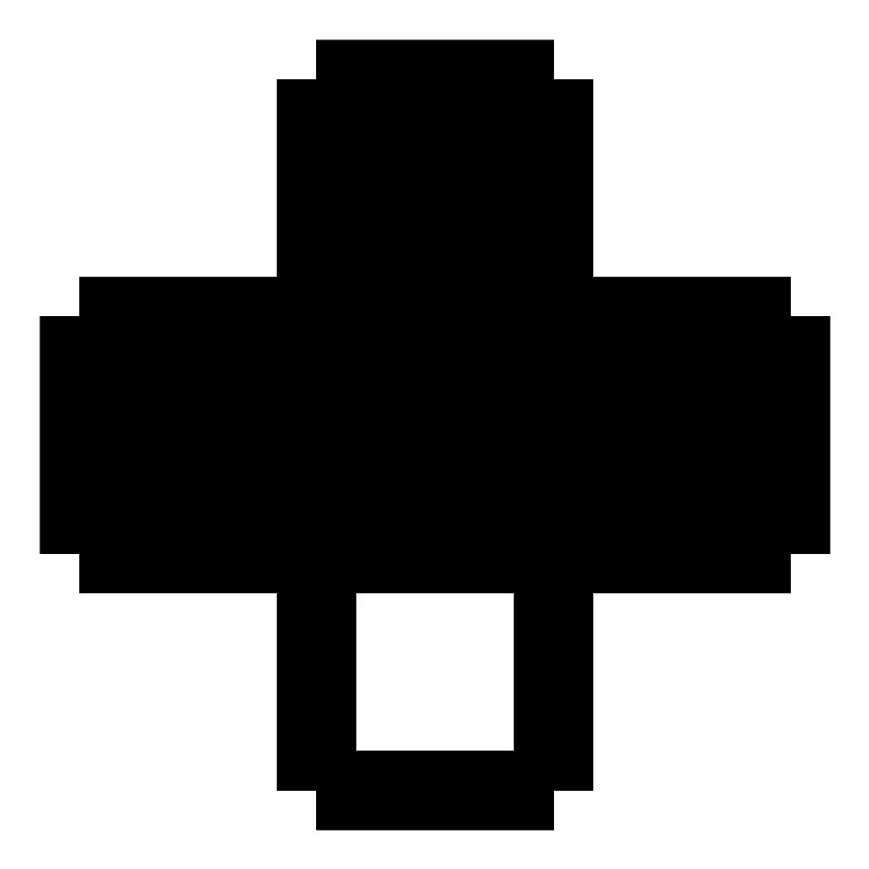 <svg fill="#000000" width="800px" height="800px" viewBox="0 0 22 22" xmlns="http://www.w3.org/2000/svg" id="memory-gamepad-down"><path d="M14 1V2H15V7H20V8H21V14H20V15H15V20H14V21H8V20H7V15H2V14H1V8H2V7H7V2H8V1H14M13 15H9V19H13V15Z" /></svg>