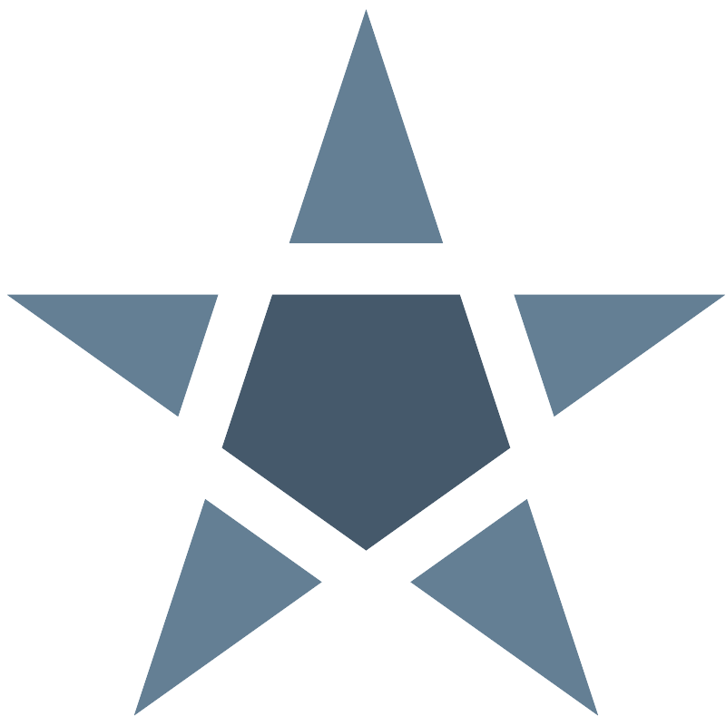 <polygon fill="#45596B" points="57.566,36.901 34.102,36.901 27.805,56.067 45.836,68.903 63.865,56.067 "/>