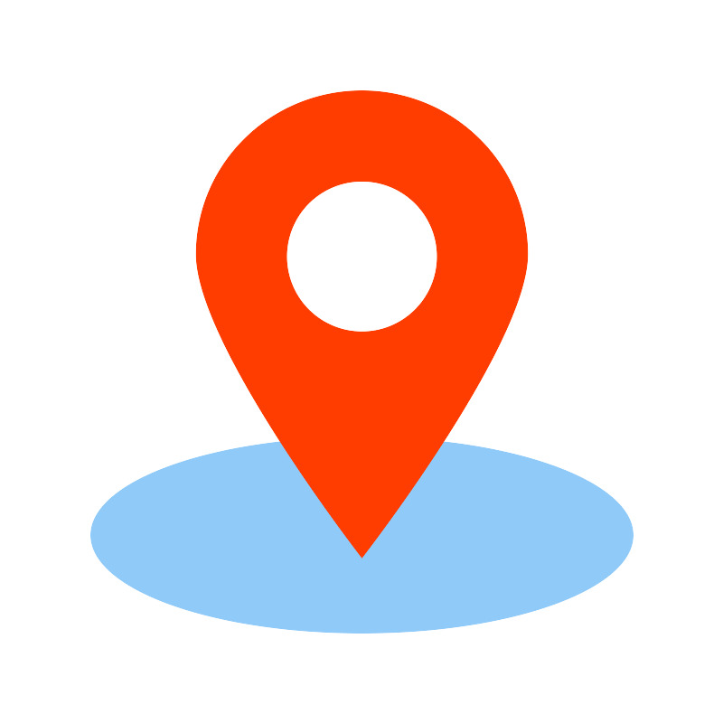 <svg width="800px" height="800px" viewBox="0 0 1024 1024" class="icon" version="1.1" xmlns="http://www.w3.org/2000/svg"><path d="M128 757.333333a384 138.666667 0 1 0 768 0 384 138.666667 0 1 0-768 0Z" fill="#90CAF9" /><path d="M512 128c-129.6 0-234.666667 103.637333-234.666667 231.466667C277.333333 487.317333 512 789.333333 512 789.333333s234.666667-302.016 234.666667-429.866666C746.666667 231.637333 641.6 128 512 128z m0 341.333333a106.666667 106.666667 0 1 1 0-213.333333 106.666667 106.666667 0 0 1 0 213.333333z" fill="#FF3D00" /></svg>