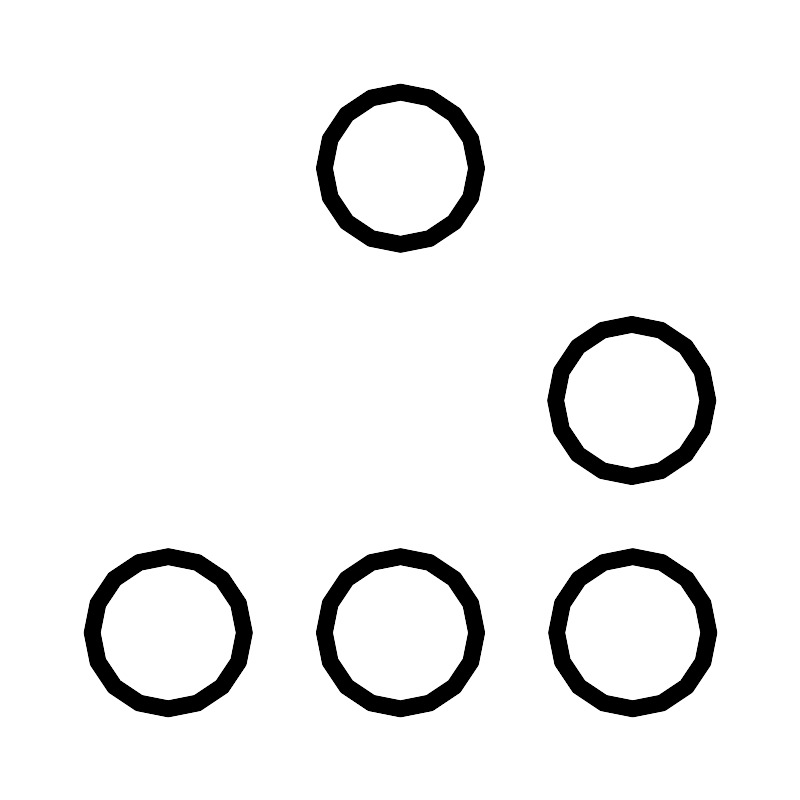 <svg width="800px" height="800px" viewBox="0 0 48 48" xmlns="http://www.w3.org/2000/svg"><defs><style>.a{fill:none;stroke:#000000;stroke-linecap:round;stroke-linejoin:round;}</style></defs><circle class="a" cx="24" cy="10.0649" r="4.5649"/><circle class="a" cx="37.8759" cy="24" r="4.5649"/><circle class="a" cx="37.9351" cy="37.9351" r="4.5649"/><circle class="a" cx="24" cy="37.9351" r="4.5649"/><circle class="a" cx="10.0649" cy="37.9351" r="4.5649"/></svg>