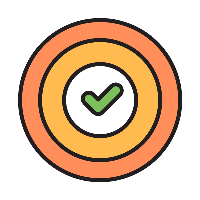 <svg width="800px" height="800px" viewBox="0 0 50 50" data-name="Layer 1" id="Layer_1" xmlns="http://www.w3.org/2000/svg"><defs><style>.cls-1{fill:#231f20;}.cls-2{fill:#ff8e5a;}.cls-3{fill:#ffba50;}.cls-4{fill:#ffffff;}.cls-5{fill:#7cc05b;}</style></defs><title/><circle class="cls-1" cx="25" cy="25" r="20.5"/><circle class="cls-2" cx="25" cy="25" r="19.5"/><circle class="cls-1" cx="25" cy="25" r="15.5"/><circle class="cls-3" cx="25" cy="25" r="14.5"/><circle class="cls-1" cx="25" cy="25" r="9.5"/><circle class="cls-4" cx="25" cy="25" r="8.5"/><path class="cls-1" d="M27.5,21.164l-2.982,2.982-.916-.917a2,2,0,0,0-2.829,2.829l2.331,2.33a2,2,0,0,0,2.828,0l4.4-4.4A2,2,0,0,0,27.5,21.164Z"/><path class="cls-5" d="M29.621,23.285l-4.4,4.4a1.025,1.025,0,0,1-1.414,0l-2.331-2.33A1,1,0,0,1,22.9,23.937l1.269,1.269a.5.5,0,0,0,.707,0l3.336-3.335a1,1,0,1,1,1.414,1.414Z"/></svg>