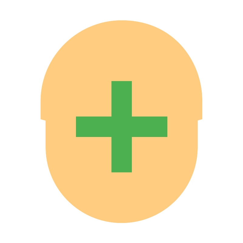 <svg width="800px" height="800px" viewBox="0 0 1024 1024" class="icon" version="1.1" xmlns="http://www.w3.org/2000/svg"><path d="M810.666667 554.666667m-85.333334 0a85.333333 85.333333 0 1 0 170.666667 0 85.333333 85.333333 0 1 0-170.666667 0Z" fill="#FFCC80" /><path d="M213.333333 554.666667m-85.333333 0a85.333333 85.333333 0 1 0 170.666667 0 85.333333 85.333333 0 1 0-170.666667 0Z" fill="#FFCC80" /><path d="M832 405.333333c0-270.933333-640-177.066667-640 0v213.333334c0 177.066667 142.933333 320 320 320s320-142.933333 320-320V405.333333z" fill="#FFCC80" /><path d="M512 85.333333C324.266667 85.333333 170.666667 238.933333 170.666667 426.666667v74.666666l44.8 12.8V405.333333l416-134.4 174.933333 134.4v108.8l44.8-12.8V426.666667C853.333333 266.666667 738.133333 85.333333 512 85.333333z" fill="#FFCC80" /><path d="M469.333333 341.333333h85.333334v384h-85.333334z" fill="#4CAF50" /><path d="M320 490.666667h384v85.333333H320z" fill="#4CAF50" /></svg>