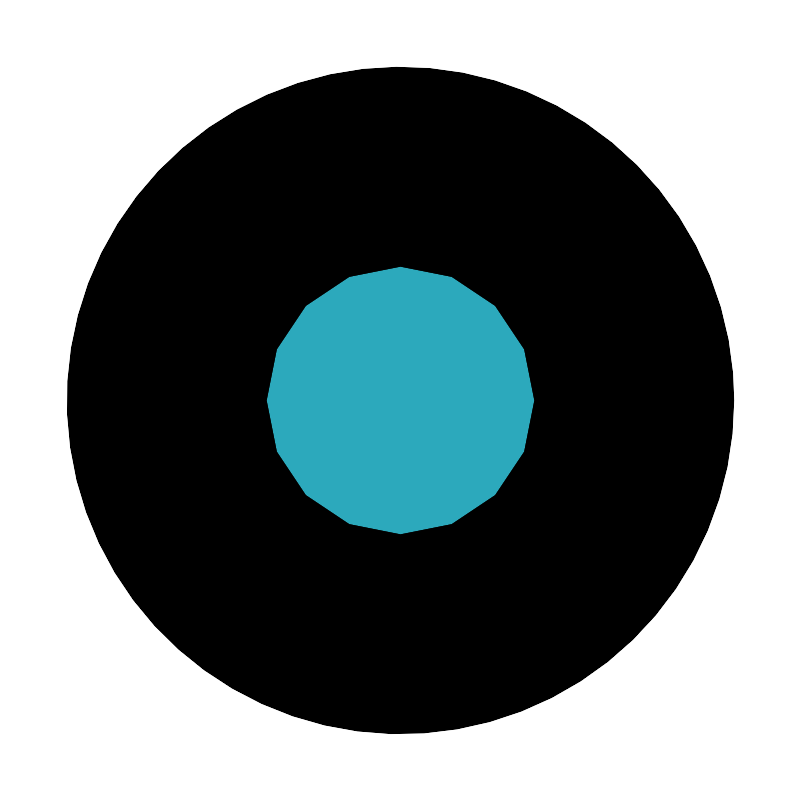 <svg fill="#000000" width="800px" height="800px" viewBox="0 0 24 24" id="gps" data-name="Flat Color" xmlns="http://www.w3.org/2000/svg" class="icon flat-color"><circle id="primary" cx="12" cy="12" r="10" style="fill: rgb(0, 0, 0);"></circle><circle id="secondary" cx="12" cy="12" r="4" style="fill: rgb(44, 169, 188);"></circle></svg>