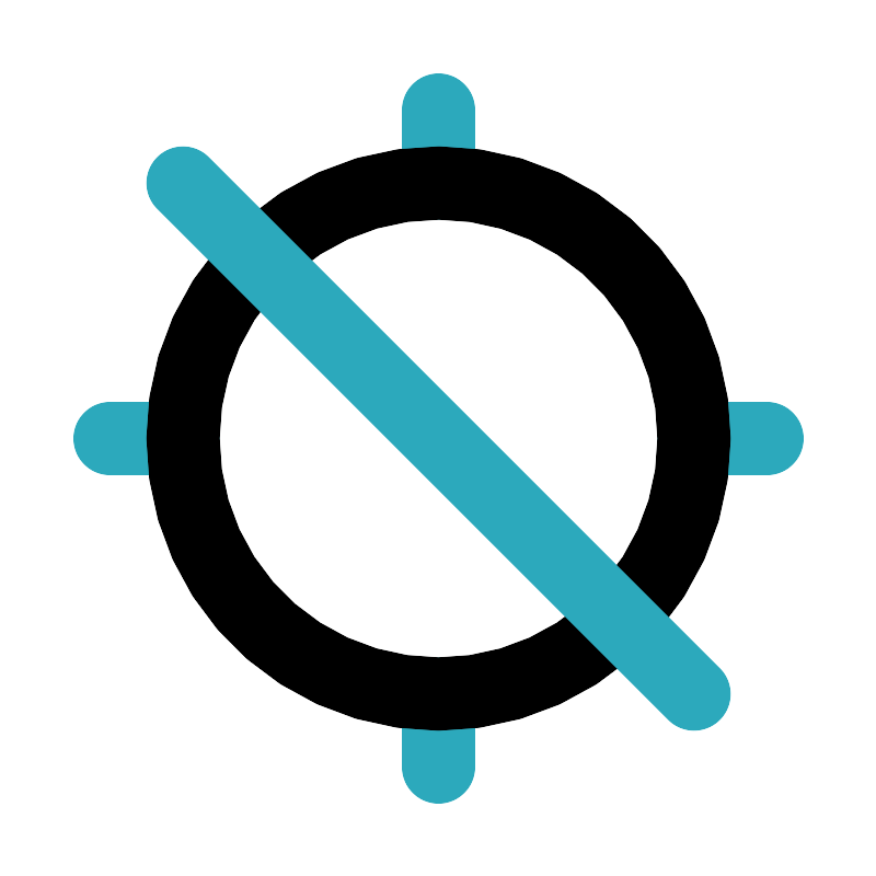 <svg fill="#000000" width="800px" height="800px" viewBox="0 0 24 24" id="gps-disable-2" data-name="Line Color" xmlns="http://www.w3.org/2000/svg" class="icon line-color"><path id="secondary" d="M12,3V5M3,12H5m7,9V19m9-7H19" style="fill: none; stroke: rgb(44, 169, 188); stroke-linecap: round; stroke-linejoin: round; stroke-width: 2;"></path><circle id="primary" cx="12" cy="12" r="7" style="fill: none; stroke: rgb(0, 0, 0); stroke-linecap: round; stroke-linejoin: round; stroke-width: 2;"></circle><line id="secondary-2" data-name="secondary" x1="19" y1="19" x2="5" y2="5" style="fill: none; stroke: rgb(44, 169, 188); stroke-linecap: round; stroke-linejoin: round; stroke-width: 2;"></line></svg>