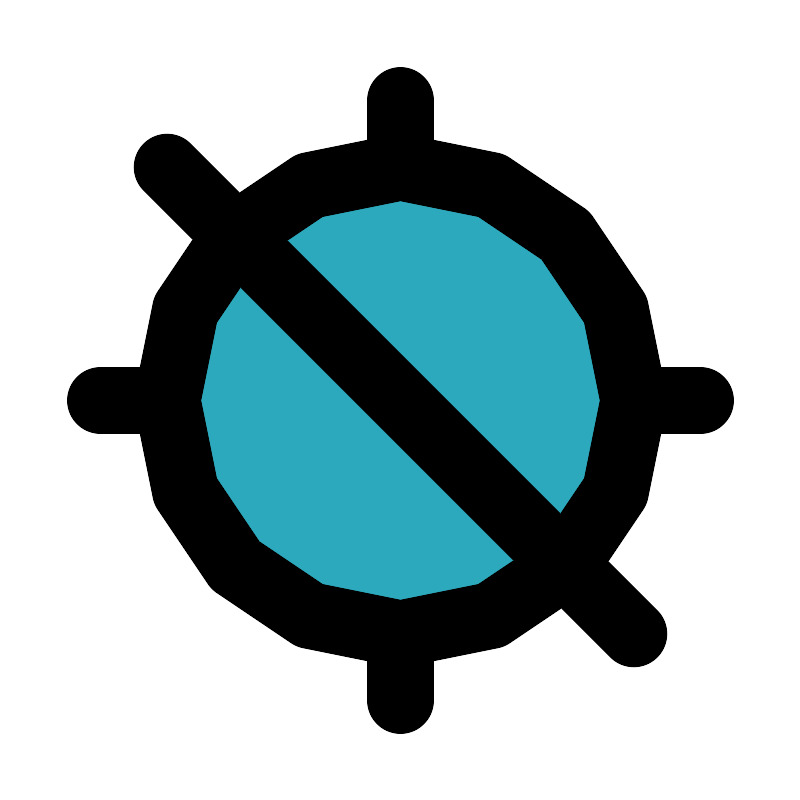 <svg fill="#000000" width="800px" height="800px" viewBox="0 0 24 24" id="gps-disable-2" data-name="Flat Line" xmlns="http://www.w3.org/2000/svg" class="icon flat-line"><circle id="secondary" cx="12" cy="12" r="7" style="fill: rgb(44, 169, 188); stroke-width: 2;"></circle><path id="primary" d="M12,3V5M3,12H5m7,9V19m9-7H19M5,12a7,7,0,1,0,7-7A7,7,0,0,0,5,12ZM5,5,19,19" style="fill: none; stroke: rgb(0, 0, 0); stroke-linecap: round; stroke-linejoin: round; stroke-width: 2;"></path></svg>