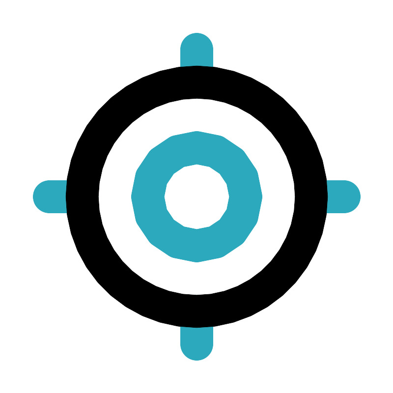 <svg fill="#000000" width="800px" height="800px" viewBox="0 0 24 24" id="gps-fixed" data-name="Line Color" xmlns="http://www.w3.org/2000/svg" class="icon line-color"><path id="secondary" d="M12,3V5m9,7H19m-7,9V19M3,12H5m10,0a3,3,0,1,0-3,3A3,3,0,0,0,15,12Z" style="fill: none; stroke: rgb(44, 169, 188); stroke-linecap: round; stroke-linejoin: round; stroke-width: 2;"></path><circle id="primary" cx="12" cy="12" r="7" style="fill: none; stroke: rgb(0, 0, 0); stroke-linecap: round; stroke-linejoin: round; stroke-width: 2;"></circle></svg>