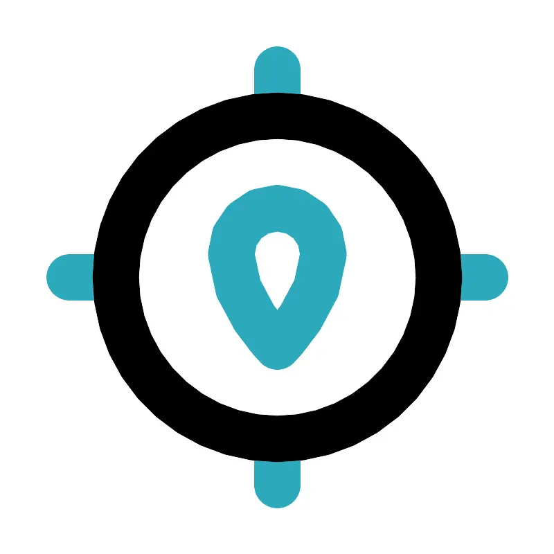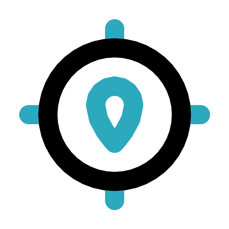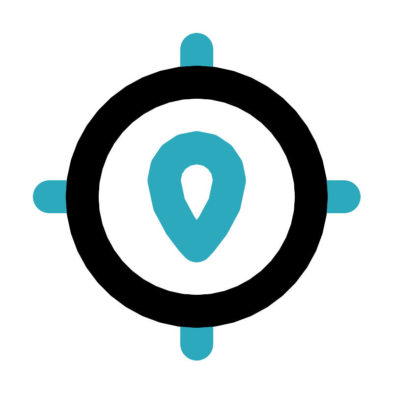 <svg fill="#000000" width="800px" height="800px" viewBox="0 0 24 24" id="gps-location" data-name="Line Color" xmlns="http://www.w3.org/2000/svg" class="icon line-color"><path id="secondary" d="M12,3V5m9,7H19m-7,9V19M3,12H5m9-1a2,2,0,0,0-4,0c0,2,2,4,2,4S14,13,14,11Z" style="fill: none; stroke: rgb(44, 169, 188); stroke-linecap: round; stroke-linejoin: round; stroke-width: 2;"></path><circle id="primary" cx="12" cy="12" r="7" style="fill: none; stroke: rgb(0, 0, 0); stroke-linecap: round; stroke-linejoin: round; stroke-width: 2;"></circle></svg>