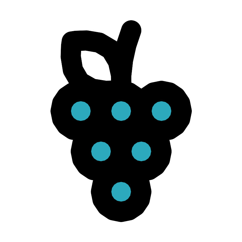 <svg fill="#000000" width="800px" height="800px" viewBox="0 0 24 24" id="grape" data-name="Flat Line" xmlns="http://www.w3.org/2000/svg" class="icon flat-line"><path id="secondary" d="M12,21a2,2,0,1,1,2-2A2,2,0,0,1,12,21Zm4-6a2,2,0,1,0-2,2A2,2,0,0,0,16,15Zm-4,0a2,2,0,1,0-2,2A2,2,0,0,0,12,15Zm2-4a2,2,0,1,0-2,2A2,2,0,0,0,14,11Zm4,0a2,2,0,1,0-2,2A2,2,0,0,0,18,11Zm-8,0a2,2,0,1,0-2,2A2,2,0,0,0,10,11Z" style="fill: rgb(44, 169, 188); stroke-width: 2;"></path><path id="primary" d="M13,3a14.52,14.52,0,0,0-1,6" style="fill: none; stroke: rgb(0, 0, 0); stroke-linecap: round; stroke-linejoin: round; stroke-width: 2;"></path><path id="primary-2" data-name="primary" d="M12,8.9s-2.77.52-4.1-.8-.8-4-.8-4,2.57-.53,3.88.8S12,8.9,12,8.9ZM14,19a2,2,0,1,0-2,2A2,2,0,0,0,14,19Zm0-2a2,2,0,1,1,2-2A2,2,0,0,1,14,17Zm-4,0a2,2,0,1,1,2-2A2,2,0,0,1,10,17Zm2-4a2,2,0,1,1,2-2A2,2,0,0,1,12,13Zm4,0a2,2,0,1,1,2-2A2,2,0,0,1,16,13ZM8,13a2,2,0,1,1,2-2A2,2,0,0,1,8,13Z" style="fill: none; stroke: rgb(0, 0, 0); stroke-linecap: round; stroke-linejoin: round; stroke-width: 2;"></path></svg>