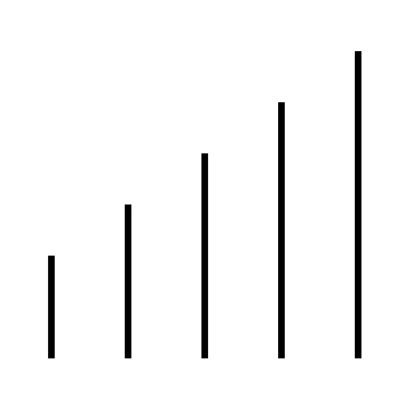 <svg width="800px" height="800px" viewBox="0 0 64 64" xmlns="http://www.w3.org/2000/svg" fill="none" stroke="#000000"><line x1="8" y1="56" x2="8" y2="40"/><line x1="20" y1="56" x2="20" y2="32"/><line x1="32" y1="56" x2="32" y2="24"/><line x1="44" y1="56" x2="44" y2="16"/><line x1="56" y1="56" x2="56" y2="8"/></svg>