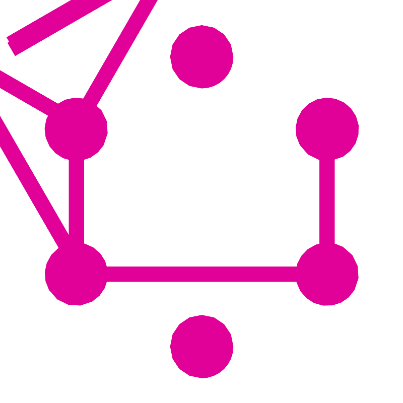 <svg width="800px" height="800px" viewBox="0 0 32 32" xmlns="http://www.w3.org/2000/svg"><title>file_type_graphql</title><rect x="-0.43" y="12.534" width="22.901" height="1.187" transform="translate(-5.858 16.107) rotate(-59.999)" style="fill:#e10098"/><rect x="4.545" y="21.162" width="22.902" height="1.187" style="fill:#e10098"/><rect x="10.43" y="18.008" width="1.187" height="13.227" transform="translate(-15.812 21.857) rotate(-59.999)" style="fill:#e10098"/><rect x="20.381" y="0.771" width="1.187" height="13.227" transform="translate(4.092 21.856) rotate(-59.999)" style="fill:#e10098"/><rect x="4.412" y="6.787" width="13.227" height="1.187" transform="translate(-2.213 6.502) rotate(-30.001)" style="fill:#e10098"/><rect x="20.389" y="1.677" width="1.187" height="22.901" transform="translate(-3.753 12.25) rotate(-30.001)" style="fill:#e10098"/><rect x="5.454" y="9.386" width="1.187" height="13.228" style="fill:#e10098"/><rect x="25.36" y="9.386" width="1.187" height="13.228" style="fill:#e10098"/><rect x="15.222" y="24.097" width="11.504" height="1.037" transform="translate(-9.498 13.785) rotate(-30.001)" style="fill:#e10098"/><path d="M28.12,23a2.5,2.5,0,1,1-.915-3.411A2.5,2.5,0,0,1,28.12,23" style="fill:#e10098"/><path d="M8.2,11.5a2.5,2.5,0,1,1-.915-3.411A2.5,2.5,0,0,1,8.2,11.5" style="fill:#e10098"/><path d="M3.88,23a2.5,2.5,0,1,1,3.411.915A2.5,2.5,0,0,1,3.88,23" style="fill:#e10098"/><path d="M23.8,11.5a2.5,2.5,0,1,1,3.411.915A2.5,2.5,0,0,1,23.8,11.5" style="fill:#e10098"/><path d="M16,30a2.5,2.5,0,1,1,2.5-2.5A2.493,2.493,0,0,1,16,30" style="fill:#e10098"/><path d="M16,6.991a2.5,2.5,0,1,1,2.5-2.5,2.493,2.493,0,0,1-2.5,2.5" style="fill:#e10098"/></svg>