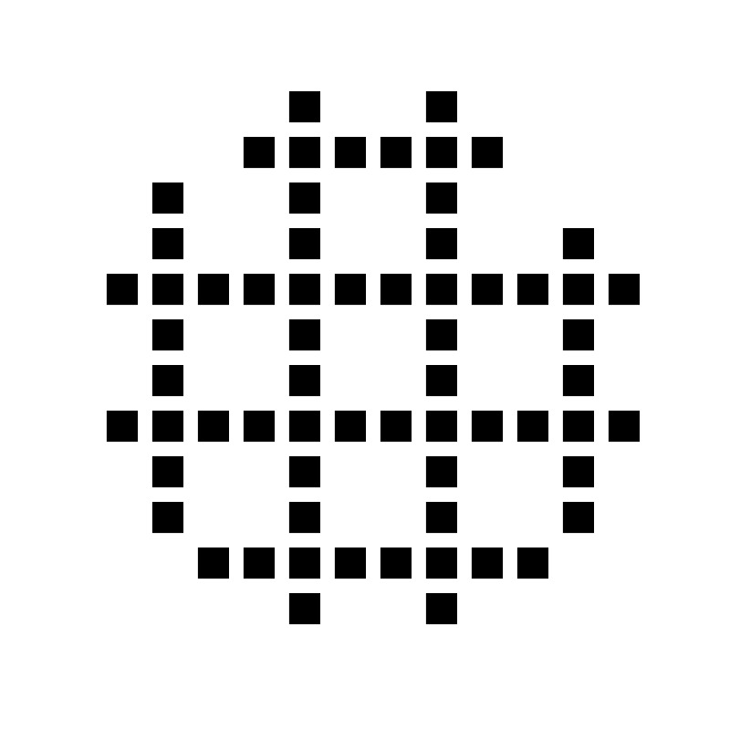 <path fill="#000000" fill-opacity="1" stroke-width="0.2" stroke-linejoin="round" d="M 34.8333,28.5L 38,28.5L 38,31.6667L 34.8333,31.6667L 34.8333,28.5 Z M 30.0832,36.4169L 30.0832,33.2503L 33.2499,33.2503L 33.2499,36.4169L 30.0832,36.4169 Z M 30.0832,28.5003L 33.2499,28.5003L 33.2499,31.6669L 30.0832,31.6669L 30.0832,28.5003 Z M 39.5831,28.5003L 42.7497,28.5003L 42.7497,31.6669L 39.5831,31.6669L 39.5831,28.5003 Z M 30.0832,38.0003L 33.2499,38.0003L 33.2499,41.1669L 30.0832,41.1669L 30.0832,38.0003 Z M 30.0832,42.7503L 33.2499,42.7503L 33.2499,45.9168L 30.0832,45.9168L 30.0832,42.7503 Z M 34.8331,42.7503L 37.9997,42.7503L 37.9997,45.9168L 34.8331,45.9168L 34.8331,42.7503 Z M 39.5831,42.7503L 42.7497,42.7503L 42.7497,45.9168L 39.5831,45.9168L 39.5831,42.7503 Z M 44.3331,42.7503L 47.4998,42.7502L 47.4998,45.9168L 44.3331,45.9168L 44.3331,42.7503 Z M 44.3331,38.0002L 47.4998,38.0002L 47.4998,41.1669L 44.3331,41.1669L 44.3331,38.0002 Z M 44.3331,33.2502L 47.4998,33.2502L 47.4998,36.4169L 44.3331,36.4169L 44.3331,33.2502 Z M 44.3331,28.5002L 47.4998,28.5002L 47.4998,31.6669L 44.3331,31.6669L 44.3331,28.5002 Z M 25.3332,28.5002L 28.4999,28.5002L 28.4999,31.6669L 25.3332,31.6669L 25.3332,28.5002 Z M 20.5832,28.5002L 23.7499,28.5002L 23.7499,31.6669L 20.5832,31.6669L 20.5832,28.5002 Z M 15.8333,28.5002L 18.9999,28.5002L 18.9999,31.6669L 15.8333,31.6669L 15.8333,28.5002 Z M 25.3332,42.7502L 28.4999,42.7502L 28.4999,45.9168L 25.3332,45.9168L 25.3332,42.7502 Z M 20.5832,42.7502L 23.7499,42.7502L 23.7499,45.9168L 20.5832,45.9168L 20.5832,42.7502 Z M 15.8333,42.7502L 18.9999,42.7502L 18.9999,45.9168L 15.8333,45.9168L 15.8333,42.7502 Z M 15.8333,33.2502L 18.9999,33.2502L 18.9999,36.4169L 15.8333,36.4169L 15.8333,33.2502 Z M 15.8333,38.0002L 18.9999,38.0002L 18.9999,41.1669L 15.8333,41.1669L 15.8333,38.0002 Z M 49.0831,28.5002L 52.2498,28.5002L 52.2498,31.6669L 49.0831,31.6669L 49.0831,28.5002 Z M 53.8331,28.5002L 56.9998,28.5002L 56.9998,31.6669L 53.8331,31.6669L 53.8331,28.5002 Z M 49.0831,42.7502L 52.2498,42.7502L 52.2498,45.9168L 49.0831,45.9168L 49.0831,42.7502 Z M 53.8331,42.7502L 56.9998,42.7502L 56.9998,45.9168L 53.8331,45.9168L 53.8331,42.7502 Z M 58.5831,42.7502L 61.7498,42.7502L 61.7498,45.9168L 58.5831,45.9168L 58.5831,42.7502 Z M 58.5832,38.0002L 61.7498,38.0002L 61.7498,41.1668L 58.5832,41.1668L 58.5832,38.0002 Z M 58.5832,33.2502L 61.7498,33.2502L 61.7498,36.4168L 58.5832,36.4168L 58.5832,33.2502 Z M 58.5832,28.5002L 61.7498,28.5002L 61.7498,31.6668L 58.5832,31.6668L 58.5832,28.5002 Z M 11.0833,28.5002L 14.25,28.5002L 14.25,31.6668L 11.0833,31.6668L 11.0833,28.5002 Z M 11.0833,42.7502L 14.25,42.7502L 14.25,45.9167L 11.0833,45.9168L 11.0833,42.7502 Z M 34.8332,57.0001L 37.9998,57.0001L 37.9998,60.1667L 34.8332,60.1667L 34.8332,57.0001 Z M 39.5832,57.0001L 42.7498,57.0001L 42.7498,60.1667L 39.5832,60.1667L 39.5832,57.0001 Z M 44.3332,57.0001L 47.4998,57.0001L 47.4998,60.1667L 44.3332,60.1667L 44.3332,57.0001 Z M 44.3332,52.2501L 47.4999,52.2501L 47.4999,55.4167L 44.3332,55.4167L 44.3332,52.2501 Z M 44.3332,47.5001L 47.4999,47.5001L 47.4999,50.6667L 44.3332,50.6667L 44.3332,47.5001 Z M 49.0832,57.0001L 52.2499,57.0001L 52.2499,60.1667L 49.0832,60.1667L 49.0832,57.0001 Z M 53.8332,57.0001L 56.9999,57.0001L 56.9999,60.1667L 53.8332,60.1667L 53.8332,57.0001 Z M 58.5832,52.2501L 61.7499,52.2501L 61.7499,55.4167L 58.5832,55.4167L 58.5832,52.2501 Z M 58.5832,47.5001L 61.7499,47.5001L 61.7499,50.6667L 58.5832,50.6667L 58.5832,47.5001 Z M 20.5833,57.0001L 23.7499,57.0001L 23.7499,60.1667L 20.5833,60.1667L 20.5833,57.0001 Z M 25.3333,57.0001L 28.4999,57.0001L 28.4999,60.1667L 25.3333,60.1667L 25.3333,57.0001 Z M 30.0833,57.0001L 33.2499,57.0001L 33.2499,60.1667L 30.0833,60.1667L 30.0833,57.0001 Z M 30.0833,52.2501L 33.2499,52.25L 33.2499,55.4167L 30.0833,55.4167L 30.0833,52.2501 Z M 30.0833,47.5L 33.25,47.5L 33.25,50.6667L 30.0833,50.6667L 30.0833,47.5 Z M 34.8332,14.2501L 37.9999,14.2501L 37.9999,17.4168L 34.8332,17.4168L 34.8332,14.2501 Z M 30.0833,22.1668L 30.0833,19.0001L 33.25,19.0001L 33.25,22.1668L 30.0833,22.1668 Z M 30.0833,14.2501L 33.25,14.2501L 33.25,17.4168L 30.0833,17.4168L 30.0833,14.2501 Z M 39.5832,14.2501L 42.7499,14.2501L 42.7499,17.4168L 39.5832,17.4168L 39.5832,14.2501 Z M 30.0833,23.7501L 33.25,23.7501L 33.25,26.9168L 30.0833,26.9168L 30.0833,23.7501 Z M 44.3333,23.7501L 47.4999,23.7501L 47.4999,26.9168L 44.3333,26.9168L 44.3333,23.7501 Z M 44.3333,19.0001L 47.4999,19.0001L 47.4999,22.1667L 44.3333,22.1667L 44.3333,19.0001 Z M 44.3333,14.2501L 47.4999,14.2501L 47.4999,17.4167L 44.3333,17.4167L 44.3333,14.2501 Z M 25.3333,14.2501L 28.5,14.2501L 28.5,17.4167L 25.3333,17.4167L 25.3333,14.2501 Z M 15.8333,19.0001L 19,19.0001L 19,22.1667L 15.8333,22.1667L 15.8333,19.0001 Z M 15.8333,23.7501L 19,23.7501L 19,26.9167L 15.8333,26.9167L 15.8333,23.7501 Z M 49.0833,14.2501L 52.2499,14.2501L 52.2499,17.4167L 49.0833,17.4167L 49.0833,14.2501 Z M 58.5833,23.7501L 61.75,23.75L 61.75,26.9167L 58.5833,26.9167L 58.5833,23.7501 Z M 63.3333,42.75L 66.5,42.75L 66.5,45.9167L 63.3333,45.9167L 63.3333,42.75 Z M 44.3333,9.50002L 47.5,9.50002L 47.5,12.6667L 44.3333,12.6667L 44.3333,9.50002 Z M 44.3333,61.75L 47.5,61.75L 47.5,64.9167L 44.3333,64.9167L 44.3333,61.75 Z M 30.0833,9.50002L 33.25,9.50002L 33.25,12.6667L 30.0833,12.6667L 30.0833,9.50002 Z M 30.0833,61.75L 33.25,61.75L 33.25,64.9167L 30.0833,64.9167L 30.0833,61.75 Z M 15.8333,52.25L 19,52.25L 19,55.4167L 15.8333,55.4167L 15.8333,52.25 Z M 15.8333,47.5L 19,47.5L 19,50.6667L 15.8333,50.6667L 15.8333,47.5 Z M 63.3333,28.5L 66.5,28.5L 66.5,31.6667L 63.3333,31.6667L 63.3333,28.5 Z "/>