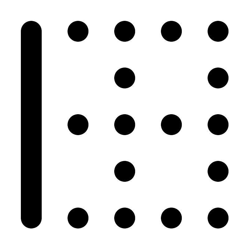 <path d="M7.5 3H7.51M7.5 12H7.51M7.5 21H7.51M16.5 3H16.51M16.5 12H16.51M16.5 21H16.51M12 3H12.01M12 12H12.01M12 21H12.01M12 16.5H12.01M12 7.5H12.01M21 3H21.01M21 12H21.01M21 21H21.01M21 16.5H21.01M21 7.5H21.01M3 21V3" stroke="#000000" stroke-width="2" stroke-linecap="round" stroke-linejoin="round"/>