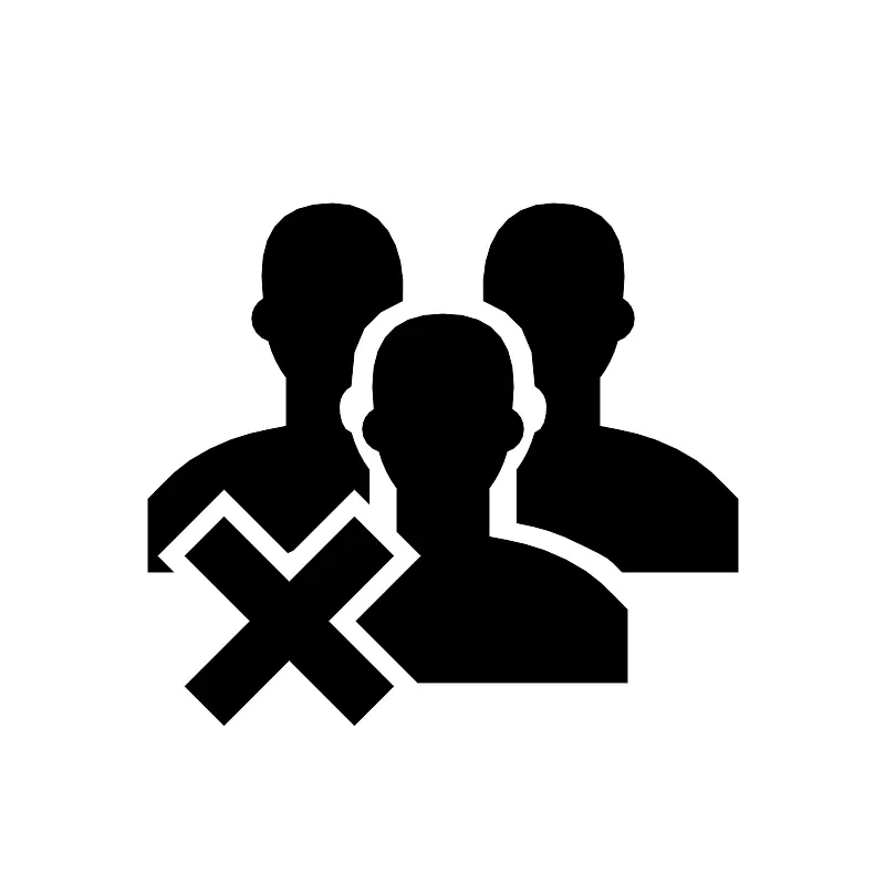 <path fill="#000000" fill-opacity="1" stroke-width="0.2" stroke-linejoin="round" d="M 15.8333,47.6921L 19.1921,44.3333L 24.79,49.9312L 30.3879,44.3333L 33.7467,47.6921L 28.1488,53.29L 33.7467,58.8879L 30.3879,62.2467L 24.79,56.6488L 19.1921,62.2467L 15.8333,58.8879L 21.4313,53.29L 15.8333,47.6921 Z M 38,26.9167C 42.618,26.9167 44.5972,29.5555 43.9312,35.0945C 44.5262,35.4358 44.9271,36.0773 44.9271,36.8125C 44.9271,37.7121 44.3269,38.4715 43.5051,38.7122C 43.1618,39.9359 42.6286,41.0191 41.9583,41.8856L 41.9583,46.0486C 44.1574,46.4884 45.9167,46.7083 48.5555,48.0278C 51.1944,49.3472 52.0741,50.5567 53.8333,52.316L 53.8333,58.5833L 35.8221,58.5833L 30.5288,53.29L 36.1267,47.6921L 34.0416,45.6071L 34.0417,41.8856C 33.3714,41.0191 32.8382,39.9359 32.4949,38.7122C 31.6731,38.4715 31.0729,37.7121 31.0729,36.8125C 31.0729,36.0773 31.4737,35.4358 32.0688,35.0945C 31.4028,29.5555 33.3819,26.9167 38,26.9167 Z M 12.6667,49.0833L 12.6667,42.816C 14.4259,41.0567 15.3056,39.8472 17.9444,38.5278C 20.5833,37.2084 22.3426,36.9885 24.5417,36.5486L 24.5417,32.3856C 23.8714,31.5191 23.3382,30.4359 22.9949,29.2122C 22.1731,28.9715 21.5729,28.2121 21.5729,27.3125C 21.5729,26.5774 21.9738,25.9358 22.5688,25.5945C 21.9028,20.0556 23.8819,17.4167 28.5,17.4167C 32.8315,17.4167 34.8414,20.9258 34.5246,25.7844C 31.6667,26.9167 30.0833,28.5 30.0896,33.1153C 29.4946,33.4566 29.0937,34.0982 29.0937,34.8334C 29.0937,35.733 29.2981,36.8882 30.1199,37.1288C 30.4632,38.3525 30.9964,39.4358 31.6667,40.3023L 31.6667,43.2321L 30.3929,41.9583L 25.1636,47.1876L 24.6729,47.4341L 19.1971,41.9583L 13.4633,47.6921L 14.8546,49.0833L 12.6667,49.0833 Z M 50.1389,46.8403C 47.5,45.5208 46.5324,45.3009 44.3333,44.8611L 44.3333,40.3023C 45.0036,39.4358 45.5368,38.3525 45.8801,37.1288C 46.7019,36.8882 46.9062,35.7329 46.9062,34.8333C 46.9062,34.0982 46.5054,33.4566 45.9103,33.1153C 45.9167,28.5 44.3333,26.9167 41.4754,25.7844C 41.1585,20.9258 43.1685,17.4167 47.5,17.4167C 52.118,17.4167 54.0972,20.0556 53.4312,25.5945C 54.0262,25.9358 54.4271,26.5773 54.4271,27.3125C 54.4271,28.2121 53.8268,28.9715 53.005,29.2122C 52.6617,30.4359 52.1286,31.5191 51.4583,32.3856L 51.4583,36.5486C 53.6574,36.9884 55.4166,37.2083 58.0555,38.5278C 60.6944,39.8472 61.5741,41.0567 63.3333,42.816L 63.3333,49.0833L 53.3906,49.0833C 52.1176,47.7648 52.3265,47.9341 50.1389,46.8403 Z "/>