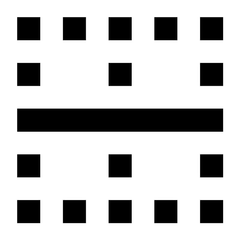 <svg fill="#000000" width="800px" height="800px" viewBox="0 0 14 14" role="img" focusable="false" aria-hidden="true" xmlns="http://www.w3.org/2000/svg"><path d="m 1,1 1.3333333,0 0,1.3333333 L 1,2.3333333 1,1 Z m 0,2.6666667 1.3333333,0 L 2.3333333,5 1,5 1,3.6666667 Z m 0,2.6666663 12,0 0,1.333334 -12,0 0,-1.333334 z M 1,9 l 1.3333333,0 0,1.333333 L 1,10.333333 1,9 Z m 0,2.666667 1.3333333,0 0,1.333333 L 1,13 1,11.666667 Z M 3.6666667,1 5,1 l 0,1.3333333 -1.3333333,0 0,-1.3333333 z m 0,10.666667 L 5,11.666667 5,13 l -1.3333333,0 0,-1.333333 z M 6.3333333,1 l 1.3333334,0 0,1.3333333 -1.3333334,0 0,-1.3333333 z m 0,2.6666667 1.3333334,0 0,1.3333333 -1.3333334,0 0,-1.3333333 z m 0,5.3333333 1.3333334,0 0,1.333333 -1.3333334,0 0,-1.333333 z m 0,2.666667 1.3333334,0 0,1.333333 -1.3333334,0 0,-1.333333 z M 9,1 l 1.333333,0 0,1.3333333 L 9,2.3333333 9,1 Z m 0,10.666667 1.333333,0 0,1.333333 L 9,13 9,11.666667 Z M 11.666667,1 13,1 l 0,1.3333333 -1.333333,0 0,-1.3333333 z m 0,2.6666667 1.333333,0 L 13,5 l -1.333333,0 0,-1.3333333 z M 11.666667,9 13,9 l 0,1.333333 -1.333333,0 0,-1.333333 z m 0,2.666667 1.333333,0 L 13,13 l -1.333333,0 0,-1.333333 z"/></svg>