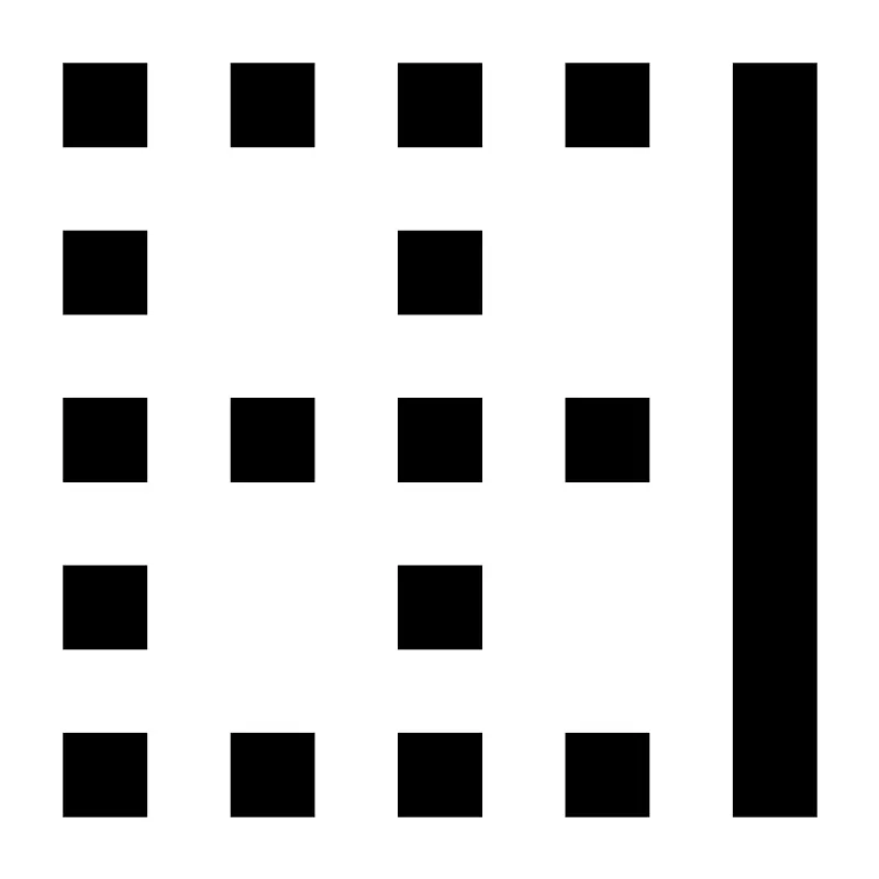 <svg fill="#000000" width="800px" height="800px" viewBox="0 0 14 14" role="img" focusable="false" aria-hidden="true" xmlns="http://www.w3.org/2000/svg"><path d="M 3.6666667,1 5,1 l 0,1.3333333 -1.3333333,0 0,-1.3333333 z m 0,5.333333 1.3333333,0 0,1.333334 -1.3333333,0 0,-1.333334 z m 0,5.333334 L 5,11.666667 5,13 l -1.3333333,0 0,-1.333333 z M 6.3333333,1 l 1.3333334,0 0,1.3333333 -1.3333334,0 0,-1.3333333 z m 0,2.6666667 1.3333334,0 0,1.3333333 -1.3333334,0 0,-1.3333333 z m 0,2.6666663 1.3333334,0 0,1.333334 -1.3333334,0 0,-1.333334 z m 0,2.666667 1.3333334,0 0,1.333333 -1.3333334,0 0,-1.333333 z m 0,2.666667 1.3333334,0 0,1.333333 -1.3333334,0 0,-1.333333 z M 9,1 l 1.333333,0 0,1.3333333 L 9,2.3333333 9,1 Z m 0,5.333333 1.333333,0 0,1.333334 -1.333333,0 0,-1.333334 z m 0,5.333334 1.333333,0 0,1.333333 L 9,13 9,11.666667 Z M 1,1 l 1.3333333,0 0,1.3333333 L 1,2.3333333 1,1 Z m 0,2.6666667 1.3333333,0 L 2.3333333,5 1,5 1,3.6666667 Z m 0,2.6666663 1.3333333,0 0,1.333334 L 1,7.666667 1,6.333333 Z M 1,9 l 1.3333333,0 0,1.333333 L 1,10.333333 1,9 Z m 0,2.666667 1.3333333,0 0,1.333333 L 1,13 1,11.666667 Z M 11.666667,1 13,1 l 0,12 -1.333333,0 0,-12 z"/></svg>