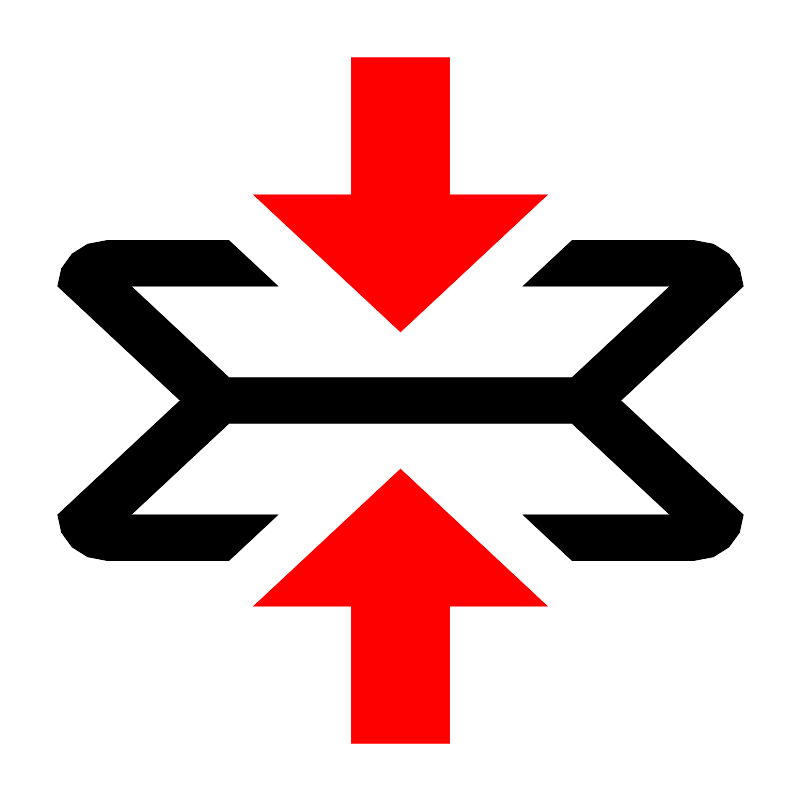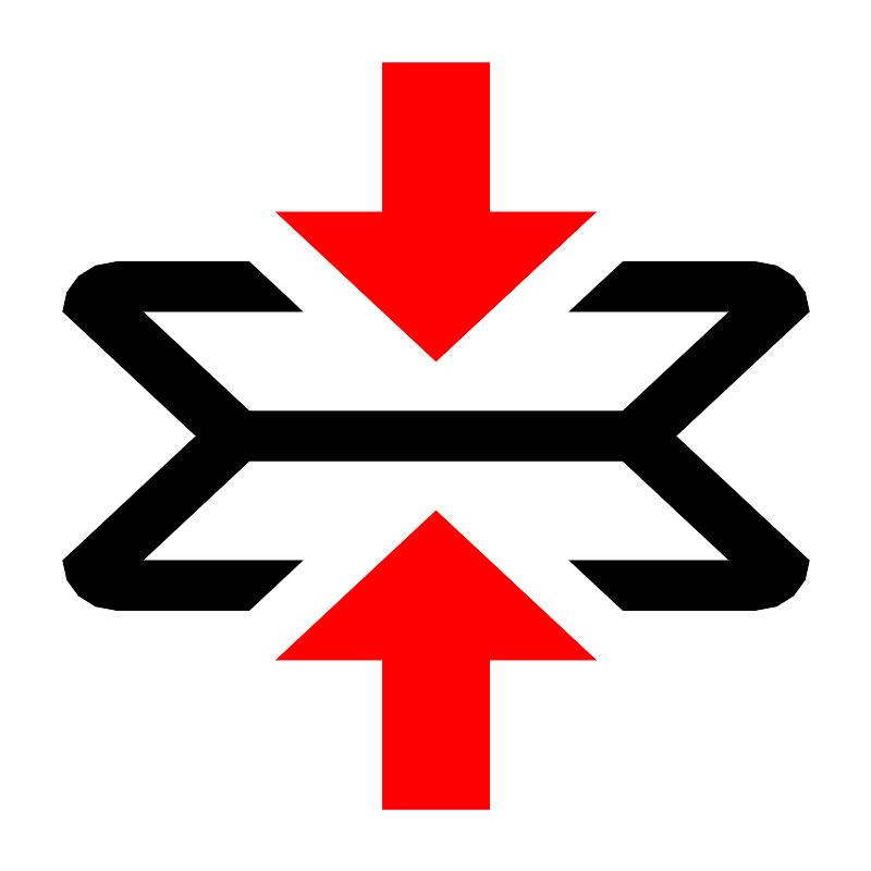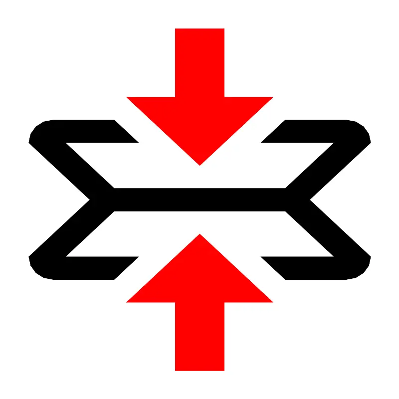 <svg fill="#000000" width="800px" height="800px" viewBox="0 0 14 14" role="img" focusable="false" aria-hidden="true" xmlns="http://www.w3.org/2000/svg"><path fill="red" d="M7 8.2l2.5714286 2.4H7.8571429V13H6.1428571v-2.4H4.4285714L7 8.2zm2.5714286-4.8H7.8571429V1H6.1428571v2.4H4.4285714L7 5.8l2.5714286-2.4z"/><path d="M13 5c0-.44-.385714-.8-.857143-.8H10l-.8571429.8h2.5714289L10 6.6H4L2.2857143 5h2.5714286L4 4.2H1.8571429C1.3857143 4.2 1 4.56 1 5l2.1428571 2L1 9c0 .44.3857143.8.8571429.8H4l.8571429-.8H2.2857143L4 7.4h6L11.714286 9H9.1428571L10 9.8h2.142857C12.614286 9.8 13 9.44 13 9l-2.142857-2L13 5z"/></svg>