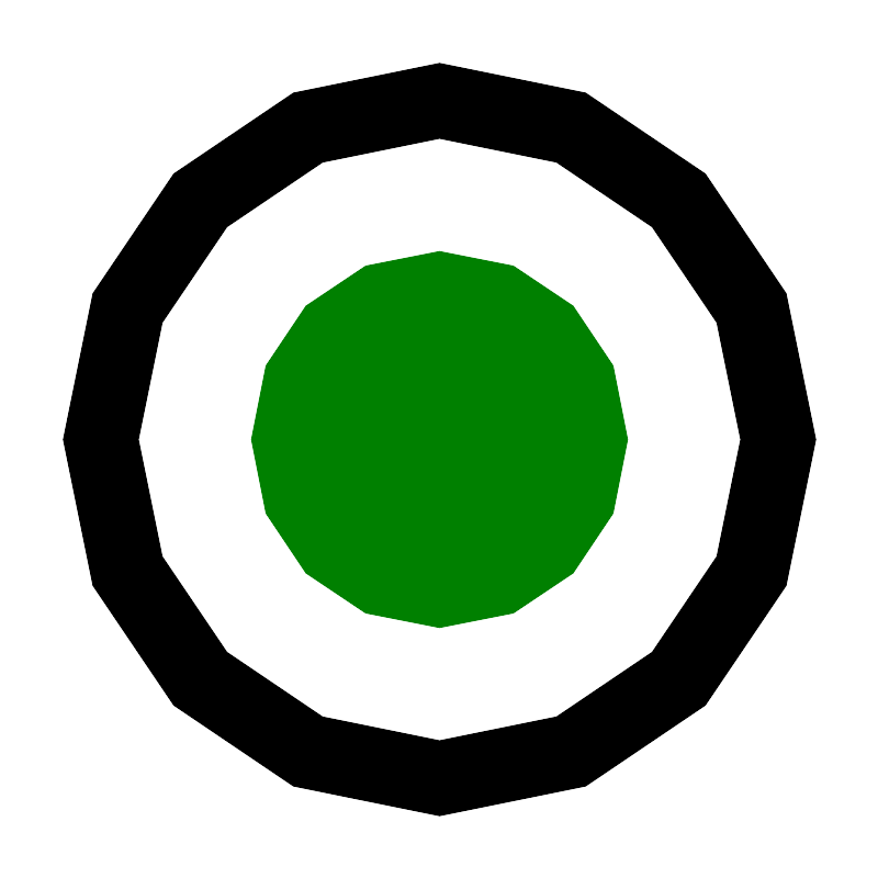 <svg fill="#000000" width="800px" height="800px" viewBox="0 0 14 14" role="img" focusable="false" aria-hidden="true" xmlns="http://www.w3.org/2000/svg"><path fill="green" d="M7 4C5.32 4 4 5.32 4 7s1.32 3 3 3 3-1.32 3-3-1.32-3-3-3z"/><path d="M7 1C3.7 1 1 3.7 1 7s2.7 6 6 6 6-2.7 6-6-2.7-6-6-6zm0 1.1992188C9.64 2.1992188 11.800781 4.36 11.800781 7S9.64 11.800781 7 11.800781C4.36 11.800781 2.1992188 9.64 2.1992188 7 2.1992188 4.36 4.36 2.1992188 7 2.1992188z"/></svg>