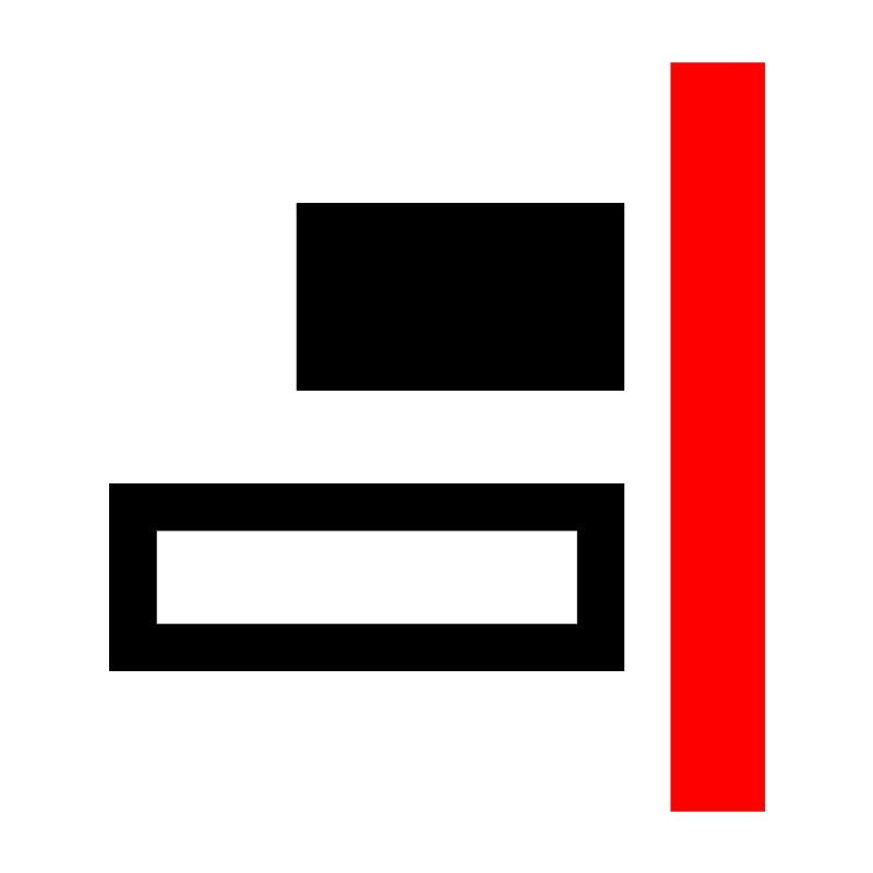 <svg fill="#000000" width="800px" height="800px" viewBox="0 0 14 14" role="img" focusable="false" aria-hidden="true" xmlns="http://www.w3.org/2000/svg"><path d="M1.75 7.75v3H10v-3H1.75zm.75.75h6.75V10H2.5V8.5z"/><path fill="red" d="M12.25 1h-1.5v12h1.5z"/><path d="M10 3.25H4.75v3H10z"/></svg>
