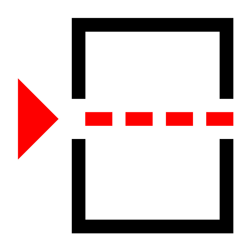 <svg fill="#000000" width="800px" height="800px" viewBox="0 0 14 14" role="img" focusable="false" aria-hidden="true" xmlns="http://www.w3.org/2000/svg"><path d="M4 5.5V1h9v4.5h-.750612V1.75061H4.750612v3.75061H4zm9 2.25061V13H4V7.75061h.750612v4.5h7.5v-4.5H13z"/><path fill="red" d="M7 6.25061h1.5V7H7v-.74939zm-2.249388 0h1.5V7h-1.5v-.74939zm4.5 0h1.5V7h-1.5v-.74939zm2.249388 0H13V7h-1.5v-.74939zM1 4.37469l2.250612 2.25062L1 8.87469v-4.5z"/></svg>
