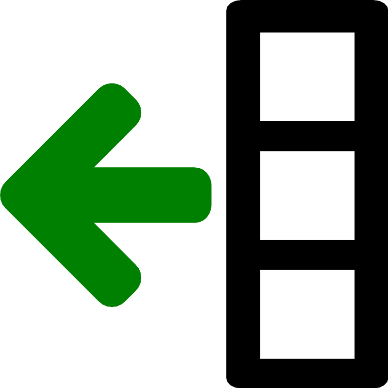 <svg fill="#000000" width="800px" height="800px" viewBox="0 0 14 14" role="img" focusable="false" aria-hidden="true" xmlns="http://www.w3.org/2000/svg"><path d="M8.6816406 0c-.2901 0-.5234375.16880625-.5234375.37890625V13.621094c0 .21.2333375.378906.5234375.378906h4.7929684c.29 0 .525391-.168906.525391-.378906V.37890625C14 .16880625 13.764609 0 13.474609 0H8.6816406zm.6875 1.1582031h3.4199214V4.375H9.3691406V1.1582031zm0 4.2851563h3.4199214v3.2148437H9.3691406V5.4433594zm0 4.2832031h3.4199214v3.2148435H9.3691406V9.7265625z"/><path fill="green" d="M4.0319 3.0001q.264 0 .4658.1915l.3882.3882q.1965.1966.1965.4709 0 .2795-.1965.4658L3.3695 6.0382h3.6436q.2691 0 .4372.194.1683.1941.1683.4684v.6625q0 .2743-.1683.4684-.1681.1941-.4372.1941H3.3695l1.5164 1.5216q.1965.1863.1965.4658 0 .2795-.1965.4658l-.3882.3882q-.1967.1966-.4658.1966-.2742 0-.471-.1966L.1917 7.4977q-.1916-.1812-.1916-.4658 0-.2795.1916-.471l3.3692-3.3693q.2019-.1915.471-.1915z"/></svg>