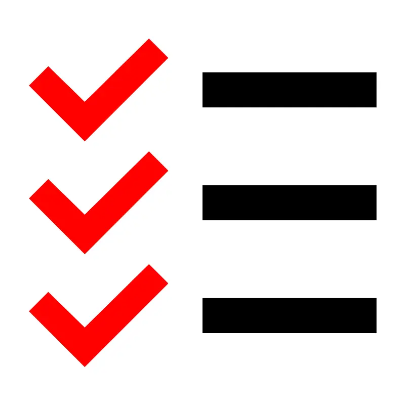 <svg fill="#000000" width="800px" height="800px" viewBox="0 0 14 14" role="img" focusable="false" aria-hidden="true" xmlns="http://www.w3.org/2000/svg"><path fill="red" d="M1 6.85l1.92 1.92L5.8 5.89l-.66-.66-2.22 2.19-1.26-1.23zm0-3.9l1.92 1.92L5.8 1.99l-.66-.66-2.22 2.19-1.26-1.23zm0 7.8l1.92 1.92L5.8 9.79l-.66-.66-2.22 2.19-1.26-1.23z"/><path d="M7 6.4h6v1.2H7zm0-3.9h6v1.2H7zm0 7.8h6v1.2H7z"/></svg>