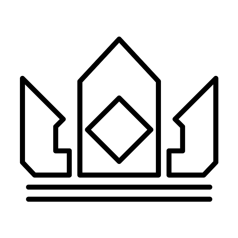 <svg width="800px" height="800px" viewBox="0 0 48 48" xmlns="http://www.w3.org/2000/svg"><defs><style>.a{fill:none;stroke:#000000;stroke-linecap:round;stroke-linejoin:round;}</style></defs><path class="a" d="M5.7188,40.1484H42.2812"/><path class="a" d="M5.7188,37.7109H42.2813"/><path class="a" d="M4.5,32.7055l2.4375,2.5679h7.0078v-4.875H11.2031v-4.875L12.7266,24,4.5,15.7734Z"/><path class="a" d="M43.5,32.7059l-2.4375,2.568H34.0547v-4.875h2.7422v-4.875L35.2734,24,43.5,15.7734Z"/><path class="a" d="M16.0781,35.2734H31.9219V16.3828L24,7.8516l-7.9219,8.5312Z"/><path class="a" d="M17.6016,26.1328,24,19.7344l6.3984,6.3984L24,32.5312Z"/></svg>