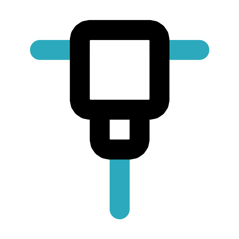 <svg fill="#000000" width="800px" height="800px" viewBox="0 0 24 24" id="hammer-drill" data-name="Line Color" xmlns="http://www.w3.org/2000/svg" class="icon line-color"><path id="secondary" d="M12,15v6M16,5h4M8,5H4" style="fill: none; stroke: rgb(44, 169, 188); stroke-linecap: round; stroke-linejoin: round; stroke-width: 2;"></path><path id="primary" d="M15,11H9a1,1,0,0,1-1-1V4A1,1,0,0,1,9,3h6a1,1,0,0,1,1,1v6A1,1,0,0,1,15,11Zm-1,0H10v3a1,1,0,0,0,1,1h2a1,1,0,0,0,1-1Z" style="fill: none; stroke: rgb(0, 0, 0); stroke-linecap: round; stroke-linejoin: round; stroke-width: 2;"></path></svg>
