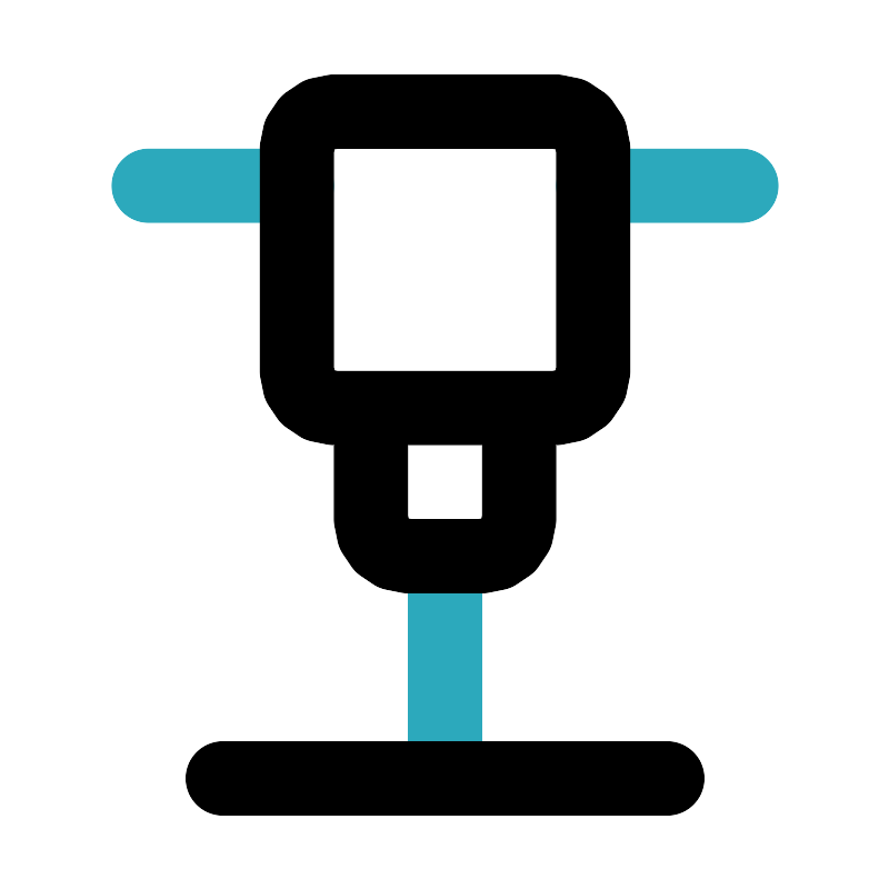<svg fill="#000000" width="800px" height="800px" viewBox="0 0 24 24" id="hammer-drill-2" data-name="Line Color" xmlns="http://www.w3.org/2000/svg" class="icon line-color"><path id="secondary" d="M12,15v6M16,5h4M8,5H4" style="fill: none; stroke: rgb(44, 169, 188); stroke-linecap: round; stroke-linejoin: round; stroke-width: 2;"></path><path id="primary" d="M6,21H18M15,11H9a1,1,0,0,1-1-1V4A1,1,0,0,1,9,3h6a1,1,0,0,1,1,1v6A1,1,0,0,1,15,11Zm-1,0H10v3a1,1,0,0,0,1,1h2a1,1,0,0,0,1-1Z" style="fill: none; stroke: rgb(0, 0, 0); stroke-linecap: round; stroke-linejoin: round; stroke-width: 2;"></path></svg>