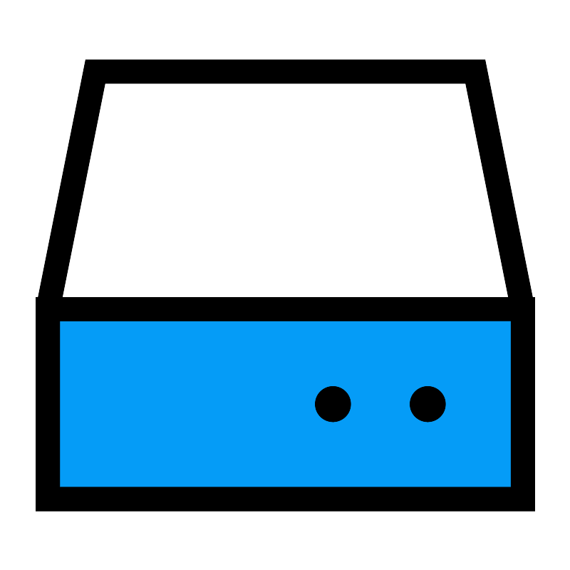 <svg width="800px" height="800px" viewBox="0 0 24 24" xmlns="http://www.w3.org/2000/svg" fill="none" stroke="#000000" stroke-width="1" stroke-linecap="round" stroke-linejoin="miter"><rect x="2" y="13" width="20" height="8" rx="0" stroke-width="0" fill="#059cf7" opacity="0.1"></rect><rect x="2" y="13" width="20" height="8" rx="0"></rect><line x1="17.99" y1="17" x2="18" y2="17" stroke-linecap="round" stroke-width="1.5"></line><line x1="14" y1="17" x2="14.01" y2="17" stroke-linecap="round" stroke-width="1.5"></line><polygon points="22 13 22 21 2 21 2 13 4 3 20 3 22 13"></polygon></svg>