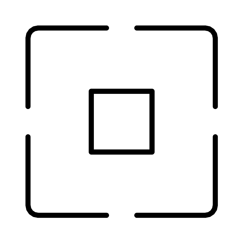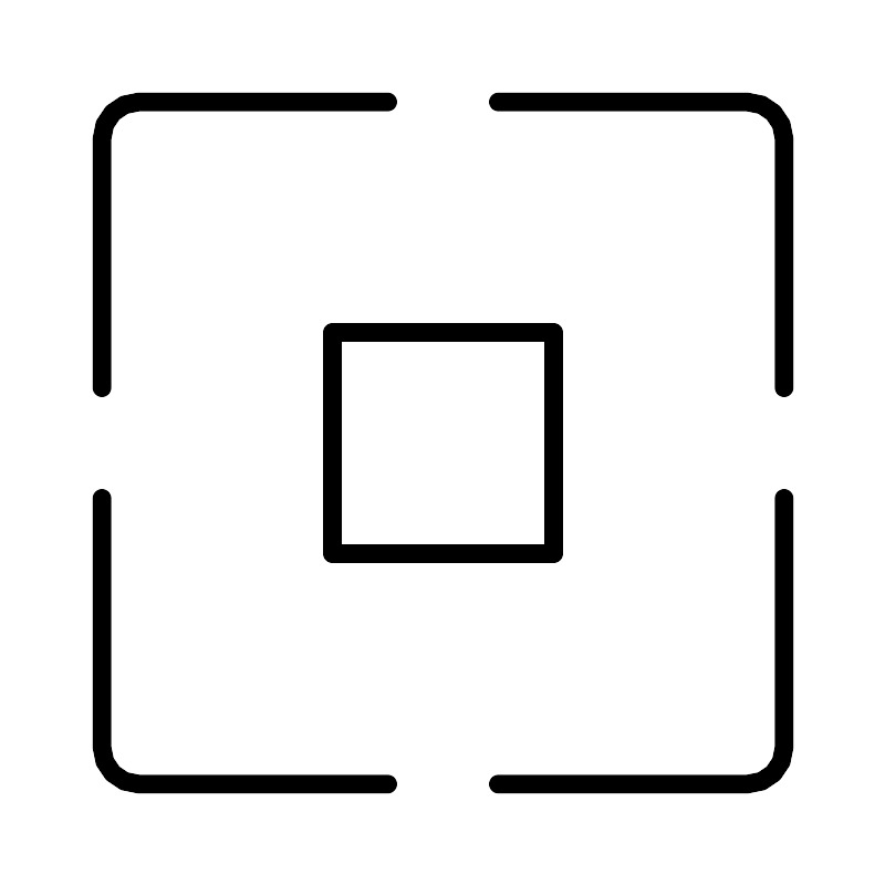 <svg width="800px" height="800px" viewBox="0 0 48 48" xmlns="http://www.w3.org/2000/svg"><defs><style>.a{fill:none;stroke:#000000;stroke-linecap:round;stroke-linejoin:round;}</style></defs><path class="a" d="M30,18H18V30H30Z"/><path class="a" d="M42.5,21V7.5a2,2,0,0,0-2-2H27"/><path class="a" d="M21,5.5H7.5a2,2,0,0,0-2,2V21"/><path class="a" d="M5.5,27V40.5a2,2,0,0,0,2,2H21"/><path class="a" d="M27,42.5H40.5a2,2,0,0,0,2-2V27"/></svg>