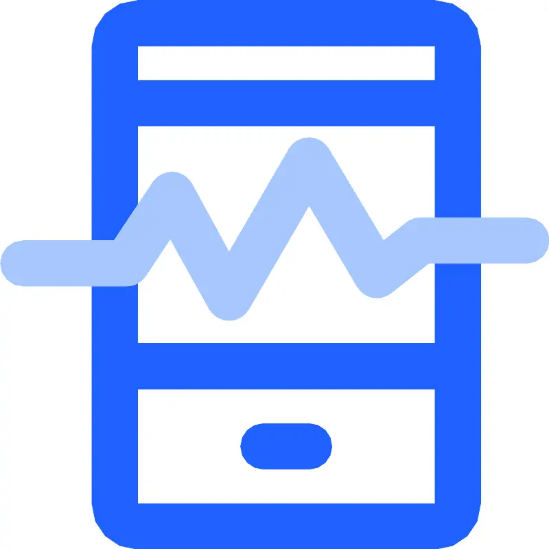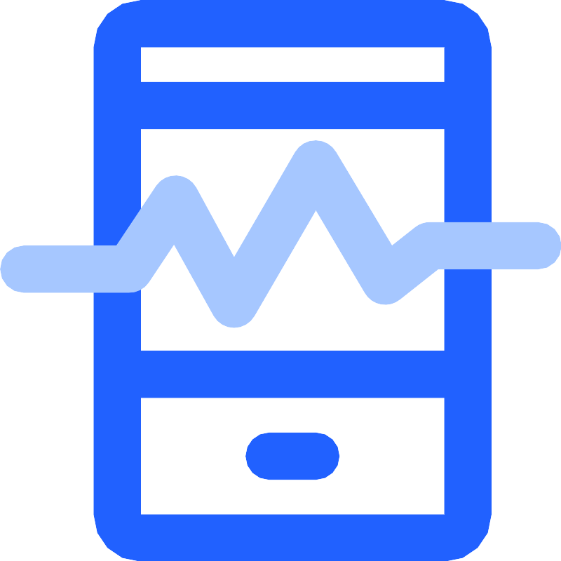 <svg width="800px" height="800px" viewBox="0 0 48 48" xmlns="http://www.w3.org/2000/svg"><title>Free Medical icons</title><path d="M38,48H12a4,4,0,0,1-4-4V4a4,4,0,0,1,4-4H38a4,4,0,0,1,4,4V44A4,4,0,0,1,38,48ZM12,4V44H38V4H12Z" fill="#2161ff"/><rect x="12" y="7" width="26" height="4" fill="#2161ff"/><path d="M27,41H23a2,2,0,0,1,0-4h4A2,2,0,0,1,27,41Z" fill="#2161ff"/><rect x="12" y="30" width="26" height="4" fill="#2161ff"/><path d="M20,28h0a2,2,0,0,1-1.73-1l-3.41-6.13-2.18,3.27A2,2,0,0,1,11,25H2a2,2,0,0,1,0-4H9.93l3.41-5.11a2,2,0,0,1,3.41.14L20,22l5.23-9A2,2,0,0,1,27,12h0a2,2,0,0,1,1.72,1l4.79,8,2-1.58A2,2,0,0,1,36.75,19H46a2,2,0,0,1,0,4H37.45L34.2,25.57a2,2,0,0,1-3-.54L27,17.94,21.73,27A2,2,0,0,1,20,28Z" fill="#a6c7ff"/><rect width="48" height="48" fill="none"/></svg>