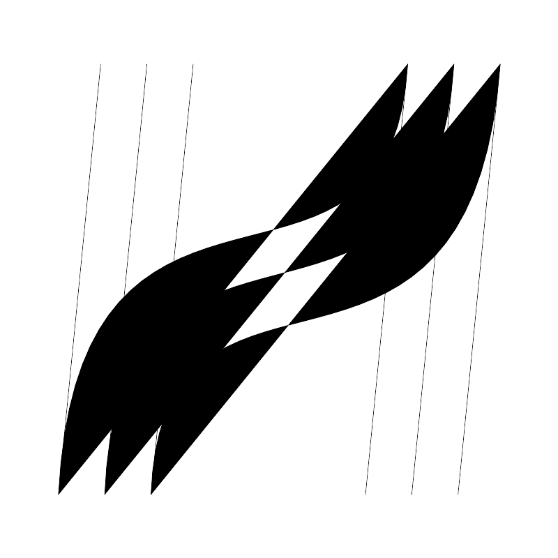 <svg width="800px" height="800px" viewBox="0 0 48 48" xmlns="http://www.w3.org/2000/svg"><defs><style>.a,.b{fill:none;stroke:#000000;stroke-linecap:round;stroke-linejoin:round;}</style></defs><path class="a" d="M16.5849,5.4912,12.9573,42.51"/><path class="a" d="M12.6067,5.4912,8.9791,42.51"/><path class="a" d="M8.6285,5.4912,5.0009,42.51"/><path class="a" d="M43,5.49,39.3723,42.5088"/><path class="a" d="M39.0185,5.49,35.3908,42.5088"/><path class="a" d="M35.04,5.49,31.4127,42.5088"/><path class="b" d="M35.04,5.49C33.629,30.2868,6.7312,8.6721,5,42.5077"/><path class="b" d="M39.0189,5.49c-1.8766,28.9829-28.8712,7.0083-30.04,37.0177"/><path class="b" d="M42.9982,5.49c-2.4651,33.7182-29.1238,11.9974-30.04,37.0177"/></svg>