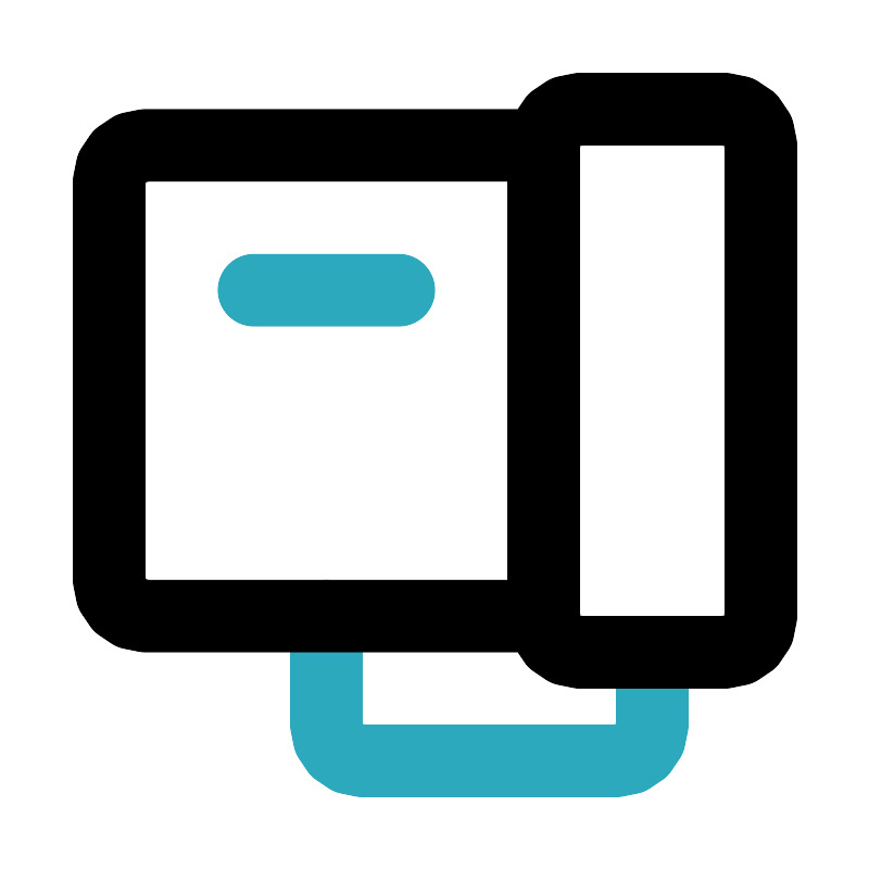<svg fill="#000000" width="800px" height="800px" viewBox="0 0 24 24" id="home-telephone" data-name="Line Color" xmlns="http://www.w3.org/2000/svg" class="icon line-color"><path id="secondary" d="M9,17v3a1,1,0,0,0,1,1h7a1,1,0,0,0,1-1V18" style="fill: none; stroke: rgb(44, 169, 188); stroke-linecap: round; stroke-linejoin: round; stroke-width: 2;"></path><line id="secondary-2" data-name="secondary" x1="11" y1="8" x2="7" y2="8" style="fill: none; stroke: rgb(44, 169, 188); stroke-linecap: round; stroke-linejoin: round; stroke-width: 2;"></line><path id="primary" d="M3,16V5A1,1,0,0,1,4,4H15V17H4A1,1,0,0,1,3,16Zm13,2h4a1,1,0,0,0,1-1V4a1,1,0,0,0-1-1H16a1,1,0,0,0-1,1V17A1,1,0,0,0,16,18Z" style="fill: none; stroke: rgb(0, 0, 0); stroke-linecap: round; stroke-linejoin: round; stroke-width: 2;"></path></svg>