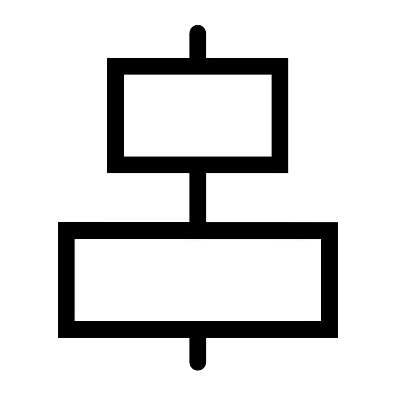 <svg width="800px" height="800px" viewBox="0 0 24 24" xmlns="http://www.w3.org/2000/svg" fill="none" stroke="#000000" stroke-width="1" stroke-linecap="round" stroke-linejoin="miter"><line x1="12" y1="2" x2="12" y2="4"></line><line x1="12" y1="20" x2="12" y2="22"></line><line x1="12" y1="10" x2="12" y2="14"></line><rect x="7" y="4" width="10" height="6" rx="0"></rect><rect x="4" y="14" width="16" height="6" rx="0"></rect></svg>