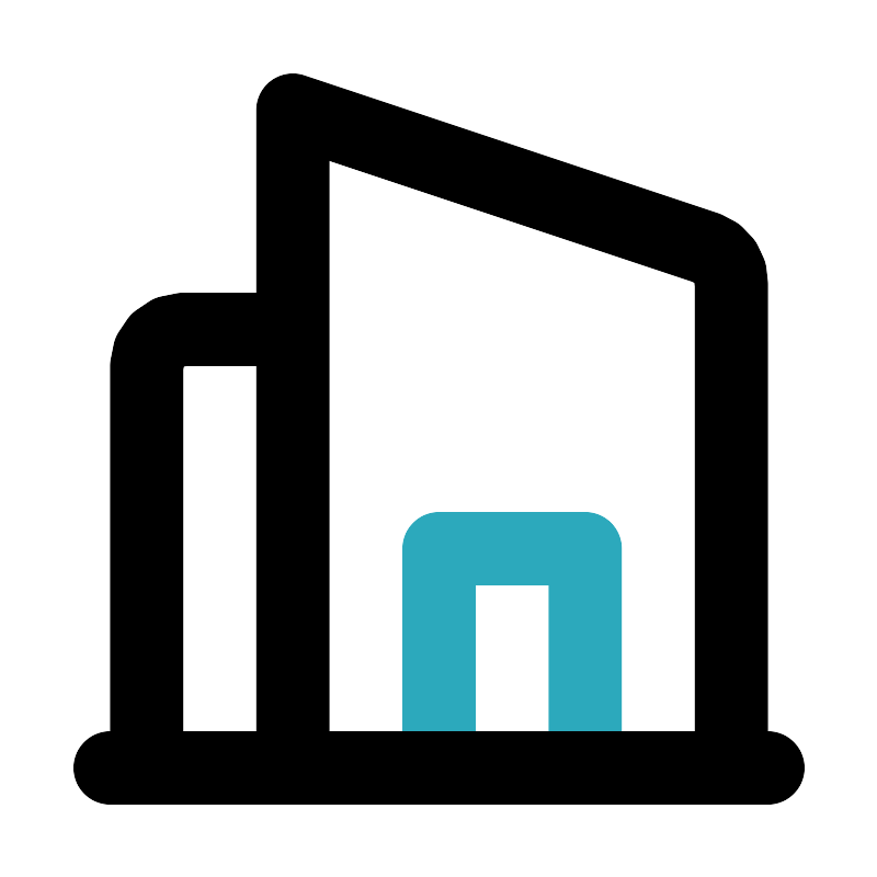 <svg fill="#000000" width="800px" height="800px" viewBox="0 0 24 24" id="hotel-3" data-name="Line Color" xmlns="http://www.w3.org/2000/svg" class="icon line-color"><rect id="secondary" x="12" y="15" width="4" height="6" style="fill: none; stroke: rgb(44, 169, 188); stroke-linecap: round; stroke-linejoin: round; stroke-width: 2;"></rect><path id="primary" d="M8,3,19.32,6.77a1,1,0,0,1,.68,1V21H8ZM4,21H8V9H5a1,1,0,0,0-1,1Zm17,0H3" style="fill: none; stroke: rgb(0, 0, 0); stroke-linecap: round; stroke-linejoin: round; stroke-width: 2;"></path></svg>