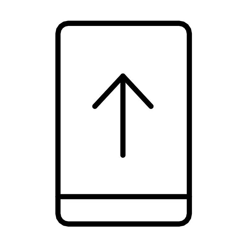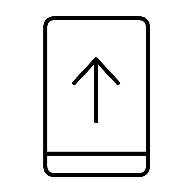 <svg width="800px" height="800px" viewBox="0 0 48 48" xmlns="http://www.w3.org/2000/svg"><defs><style>.a{fill:none;stroke:#000000;stroke-linecap:round;stroke-linejoin:round;}</style></defs><rect class="a" x="11.2373" y="4.5" width="25.5254" height="39" rx="2"/><path class="a" d="M23.8578,30.12V14.7483l5.4563,5.8833"/><path class="a" d="M23.8578,14.7483l-5.4562,5.8833"/><path class="a" d="M11.2373,38.1866H36.7627"/></svg>