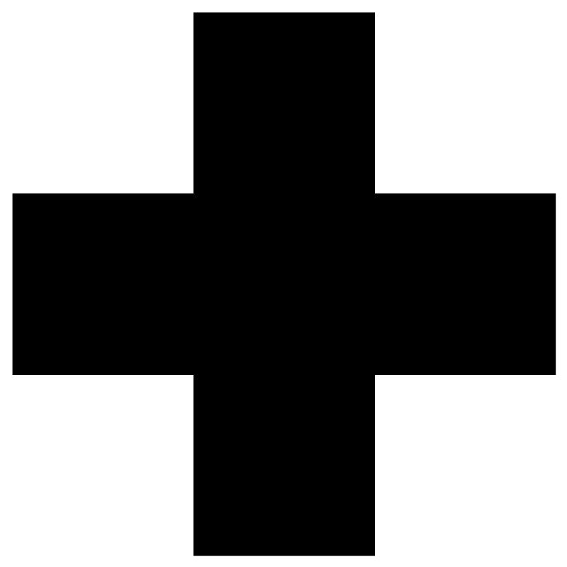 <svg width="800px" height="800px" viewBox="0 0 64 64" xmlns="http://www.w3.org/2000/svg" xmlns:xlink="http://www.w3.org/1999/xlink" aria-hidden="true" role="img" class="iconify iconify--medical-icon" preserveAspectRatio="xMidYMid meet"><path d="M21.822 62.675h20.424V42.248h20.429V21.809H42.246V1.383H21.822v20.426H1.388v20.439h20.434z" fill="#000000"></path></svg>