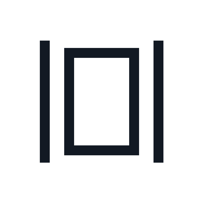 <path d="M16.5 6.5H17.1V5.9H16.5V6.5ZM8.5 6.5V5.9H7.9V6.5H8.5ZM16.5 18.5V19.1H17.1V18.5H16.5ZM8.5 18.5H7.9V19.1H8.5V18.5ZM16.5 5.9H8.5V7.1H16.5V5.9ZM17.1 18.5V6.5H15.9V18.5H17.1ZM8.5 19.1H16.5V17.9H8.5V19.1ZM7.9 6.5V18.5H9.1V6.5H7.9ZM4.9 5V20H6.1V5H4.9ZM18.9 5V20H20.1V5H18.9Z" fill="#121923"/>