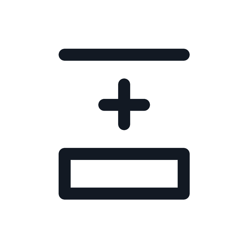 <path d="M14.5 10.5556L10.5 10.5556M12.5 12.5L12.5 8.50001M18.5 5.50001L6.5 5.50001M18.5 19.5L6.5 19.5L6.5 15.5L18.5 15.5L18.5 19.5Z" stroke="#121923" stroke-width="1.2" stroke-linecap="square"/>
