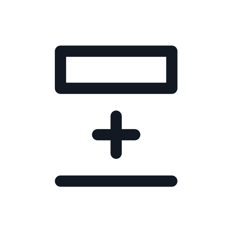 <path d="M10.5 14.5H14.5M12.5 12.5V16.5M6.5 19.5H18.5M6.5 5.5H18.5V9.5H6.5V5.5Z" stroke="#121923" stroke-width="1.2" stroke-linecap="square"/>