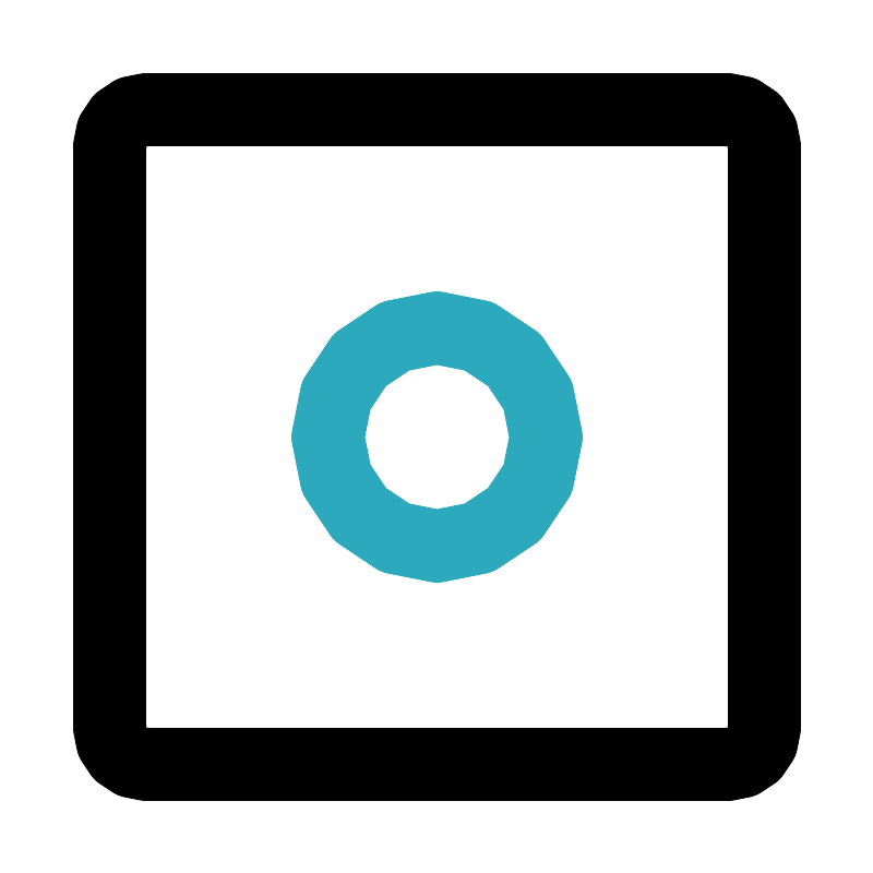 <svg fill="#000000" width="800px" height="800px" viewBox="0 0 24 24" id="instagram-2" data-name="Line Color" xmlns="http://www.w3.org/2000/svg" class="icon line-color"><circle id="secondary" cx="12" cy="12" r="3" style="fill: none; stroke: rgb(44, 169, 188); stroke-linecap: round; stroke-linejoin: round; stroke-width: 2;"></circle><rect id="primary" x="3" y="3" width="18" height="18" rx="1" style="fill: none; stroke: rgb(0, 0, 0); stroke-linecap: round; stroke-linejoin: round; stroke-width: 2;"></rect></svg>